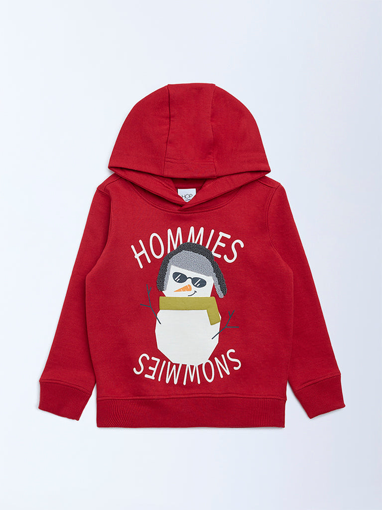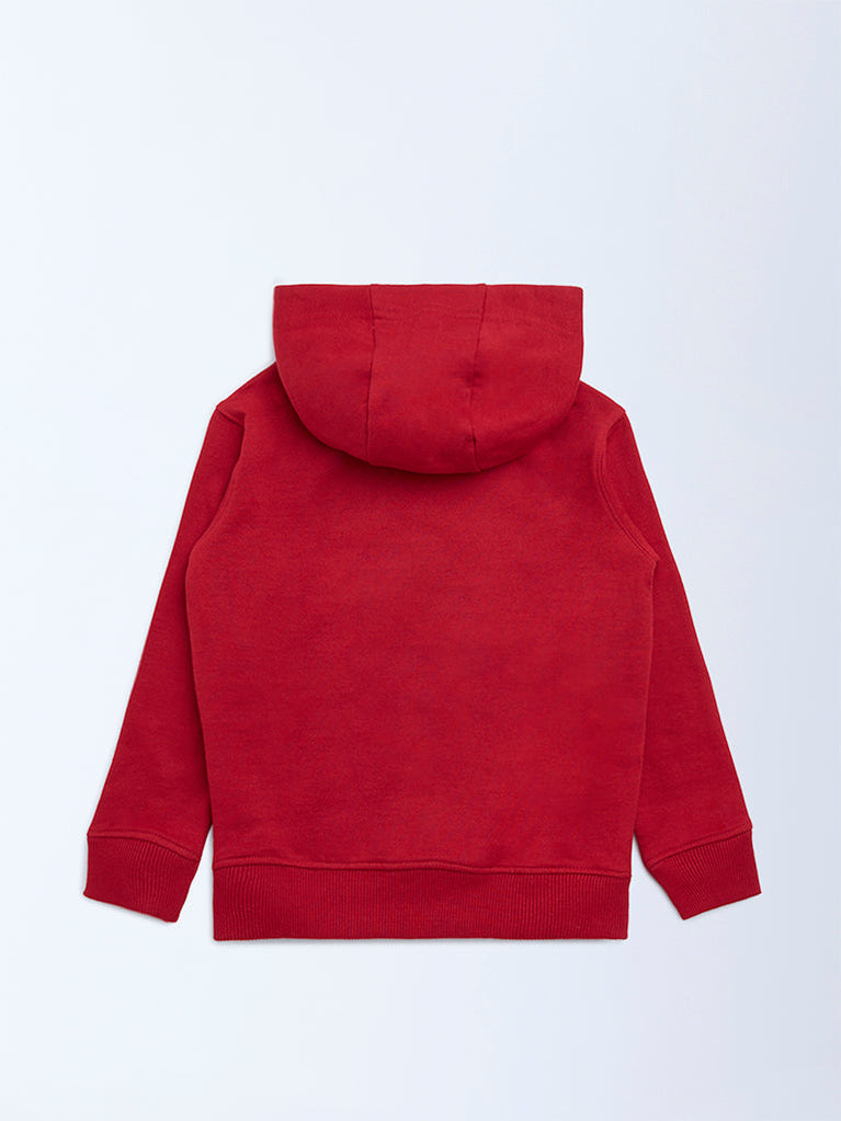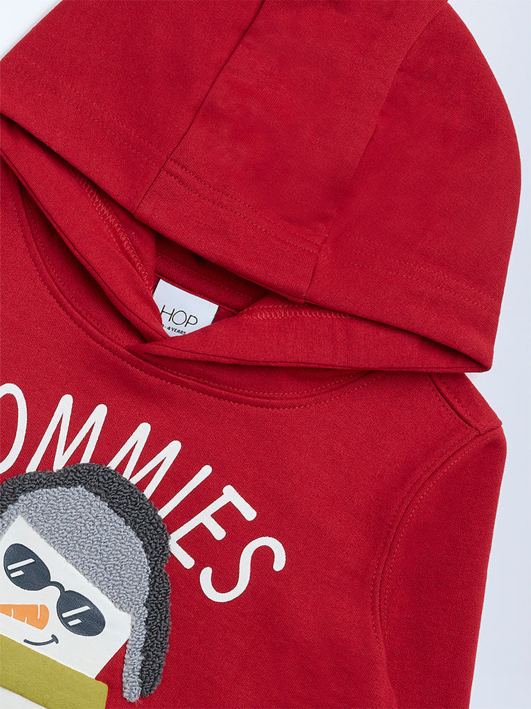 HOP Kids Boys Red Graphic Design Hooded Cotton-Blend Sweatshirt