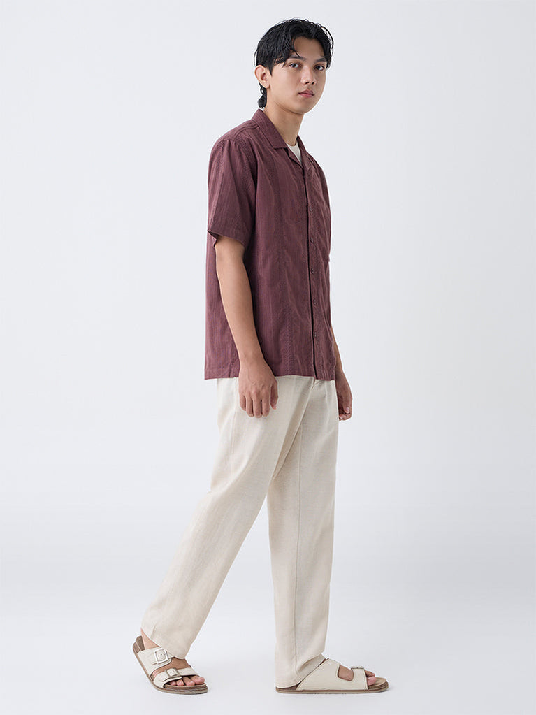 Ascot introduces this dark brown shirt, crafted from a premium linen blend for an airy, breathable feel. Designed in a relaxed handle, it features short sleeves, a classic collar, and understated stripe detailing that adds depth and texture.