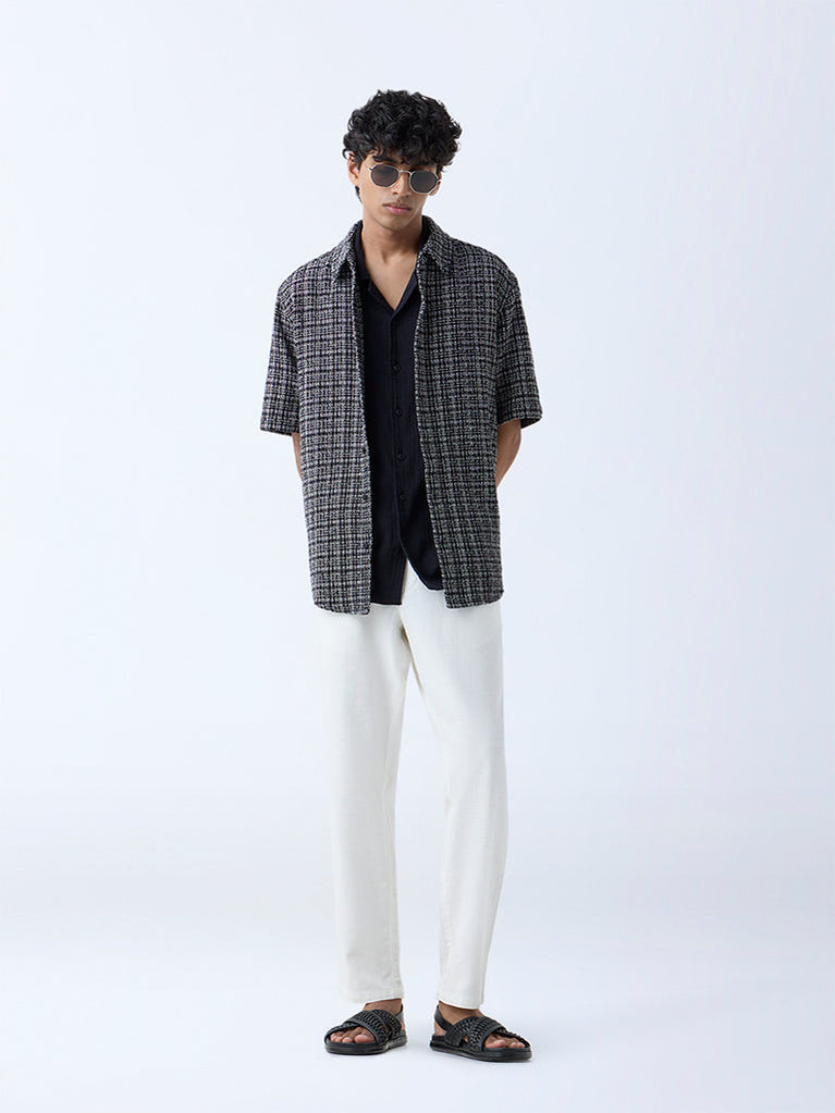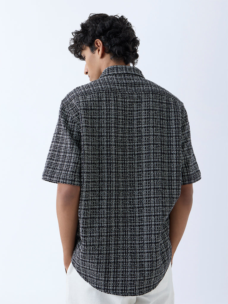 ETA Black Checks Detailed Relaxed-Fit Cotton Shirt