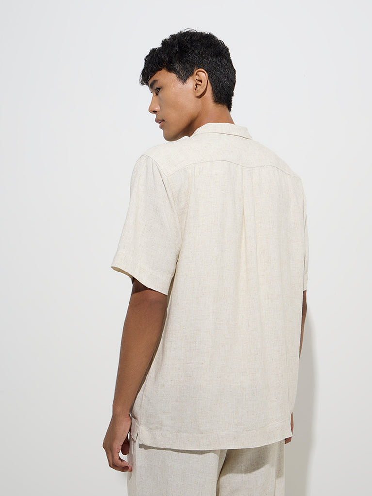ETA Beige Solid Relaxed-Fit Cotton-Blend Shirt