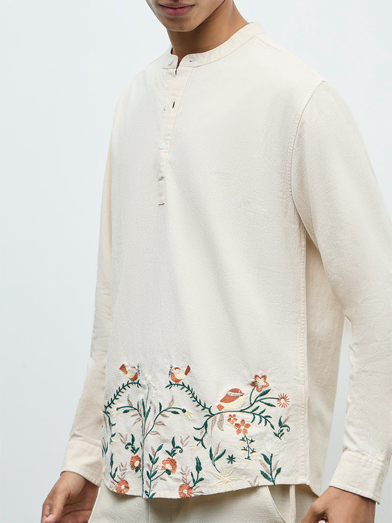 ETA Beige Floral Embroidered Relaxed-Fit Cotton Shirt