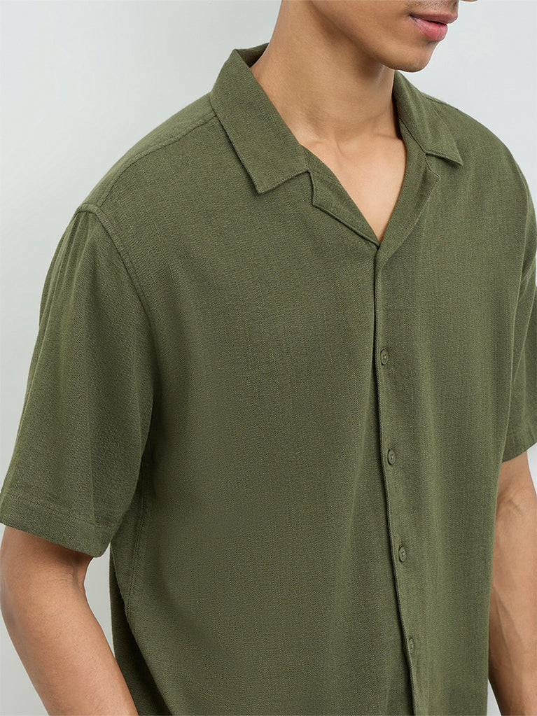 ETA Olive Textured Relaxed-Fit Cotton Shirt