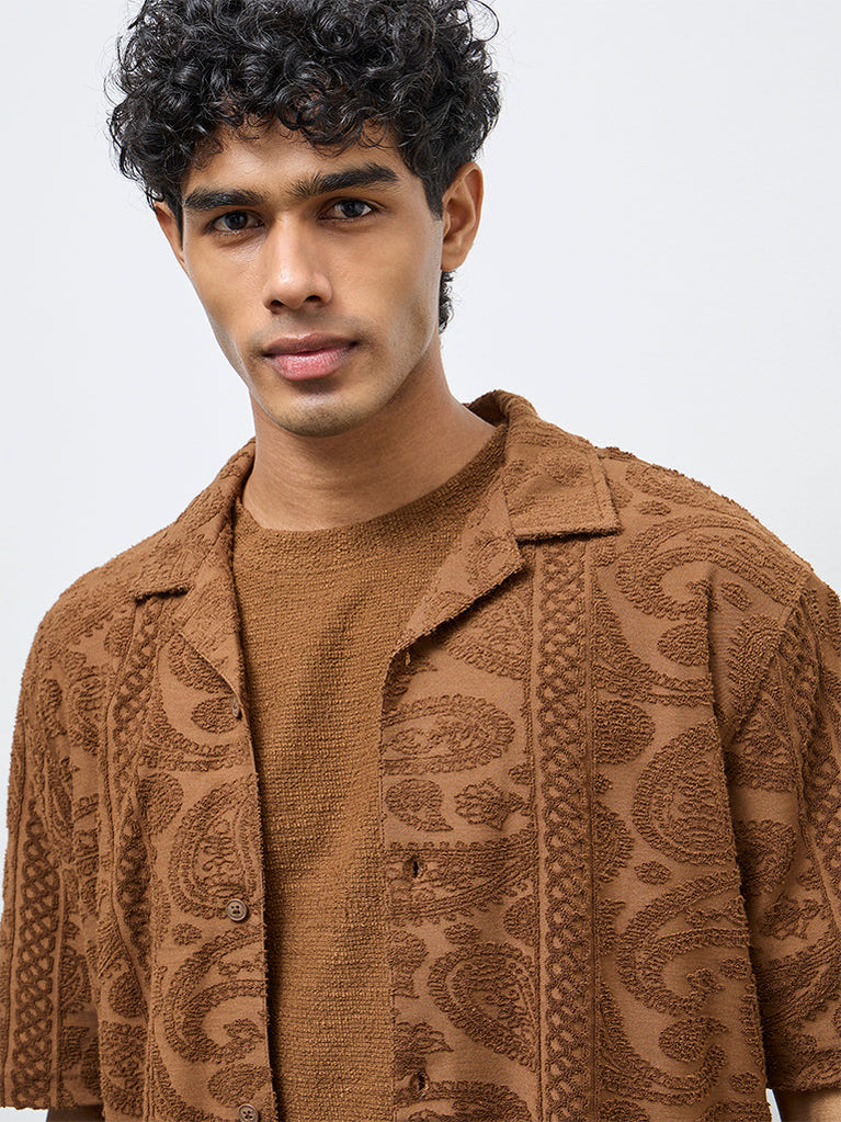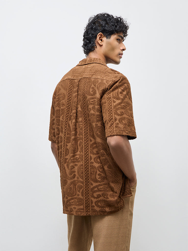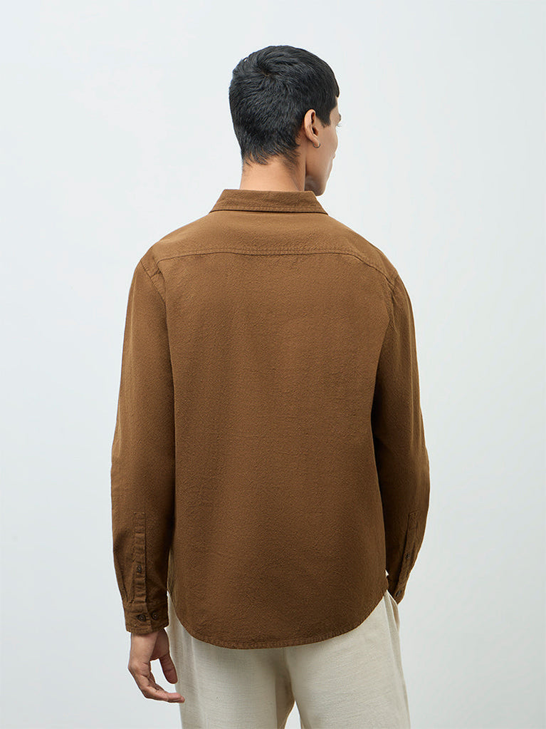 ETA Brown Textured Relaxed-Fit Cotton Shirt