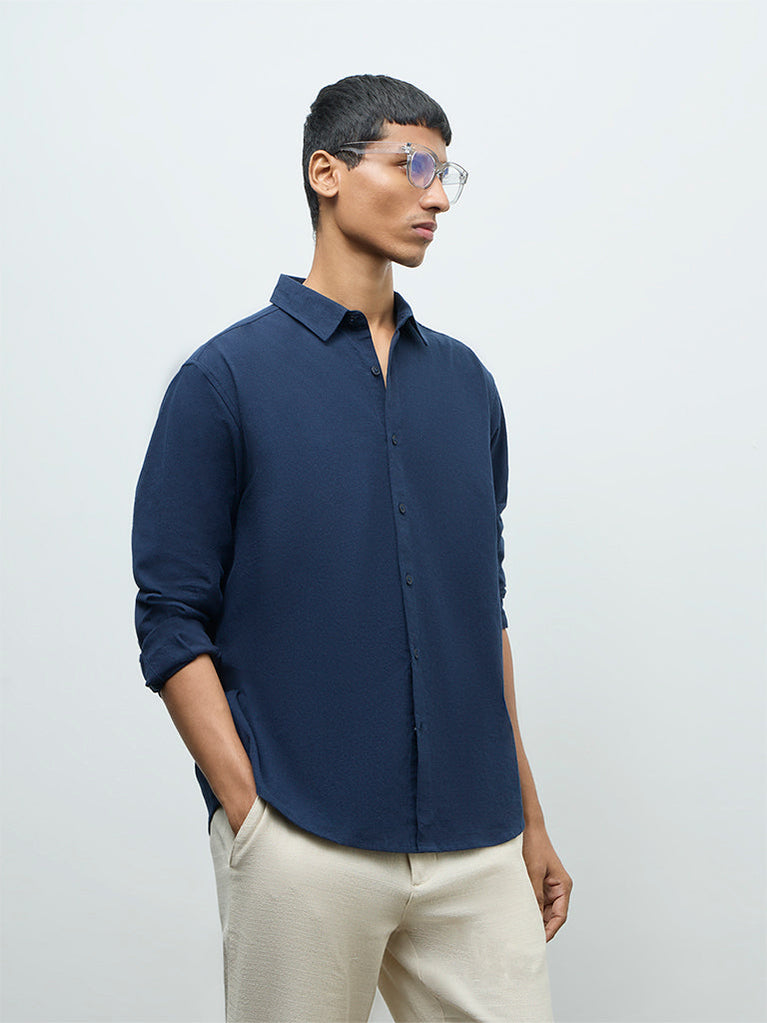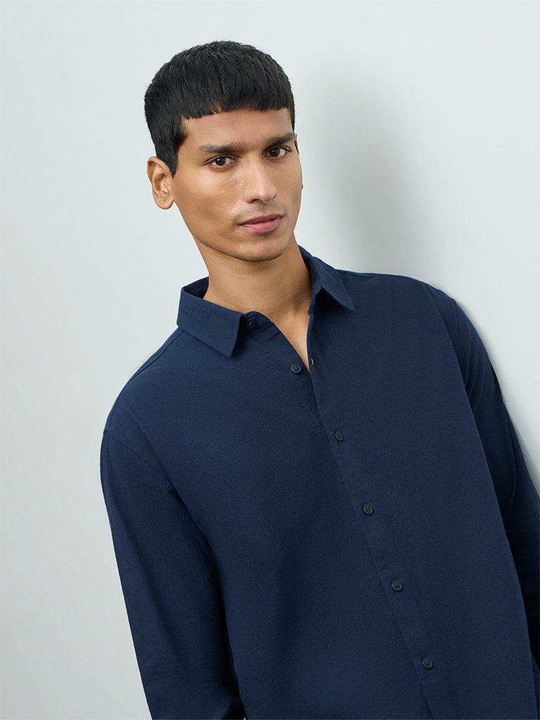 ETA Navy Relaxed-Fit Cotton Shirt