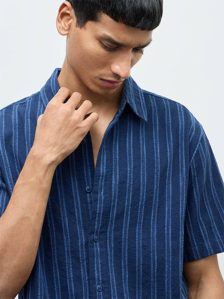ETA Navy Striped Relaxed-Fit Shirt