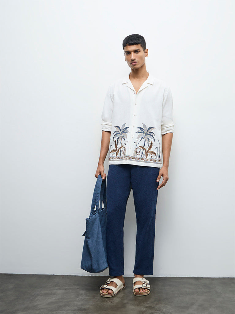 ETA White Tropical Embroidered Relaxed-Fit Cotton Shirt