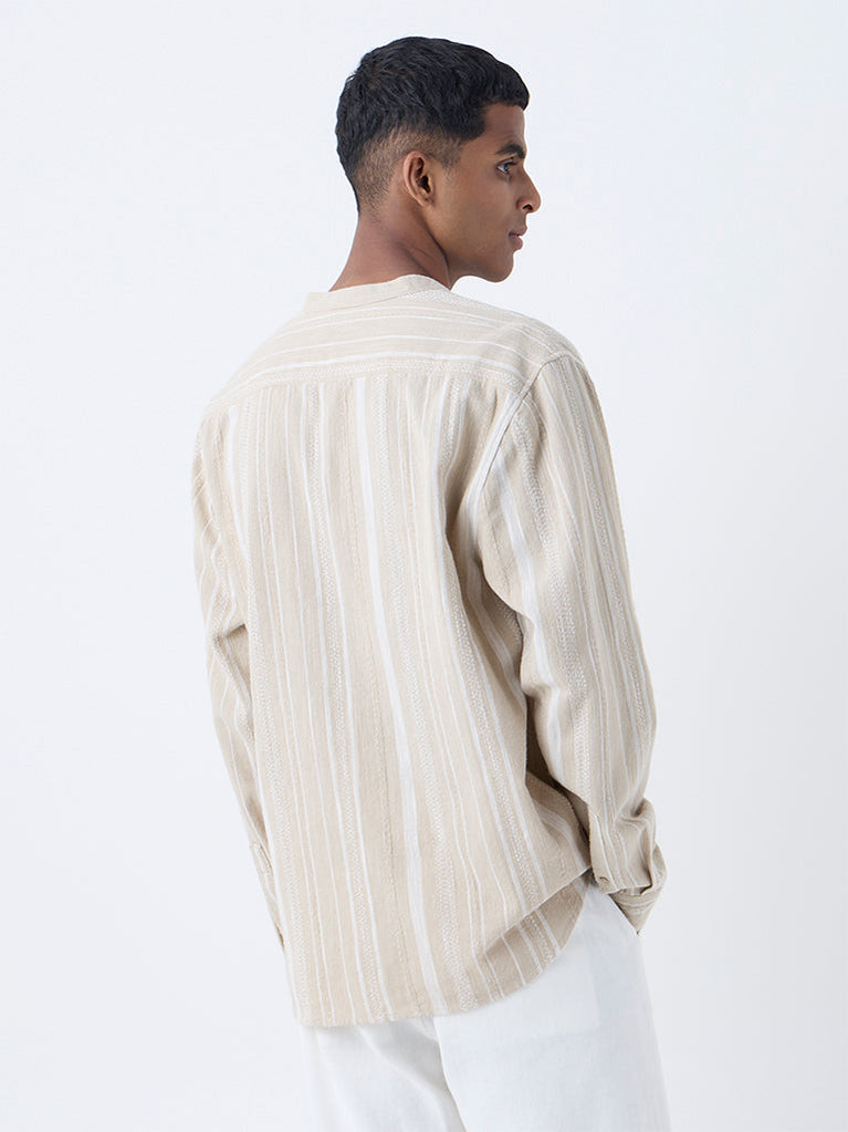 ETA Taupe Striped Relaxed-Fit Cotton Shirt