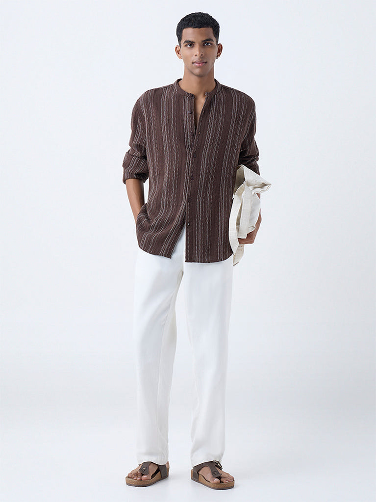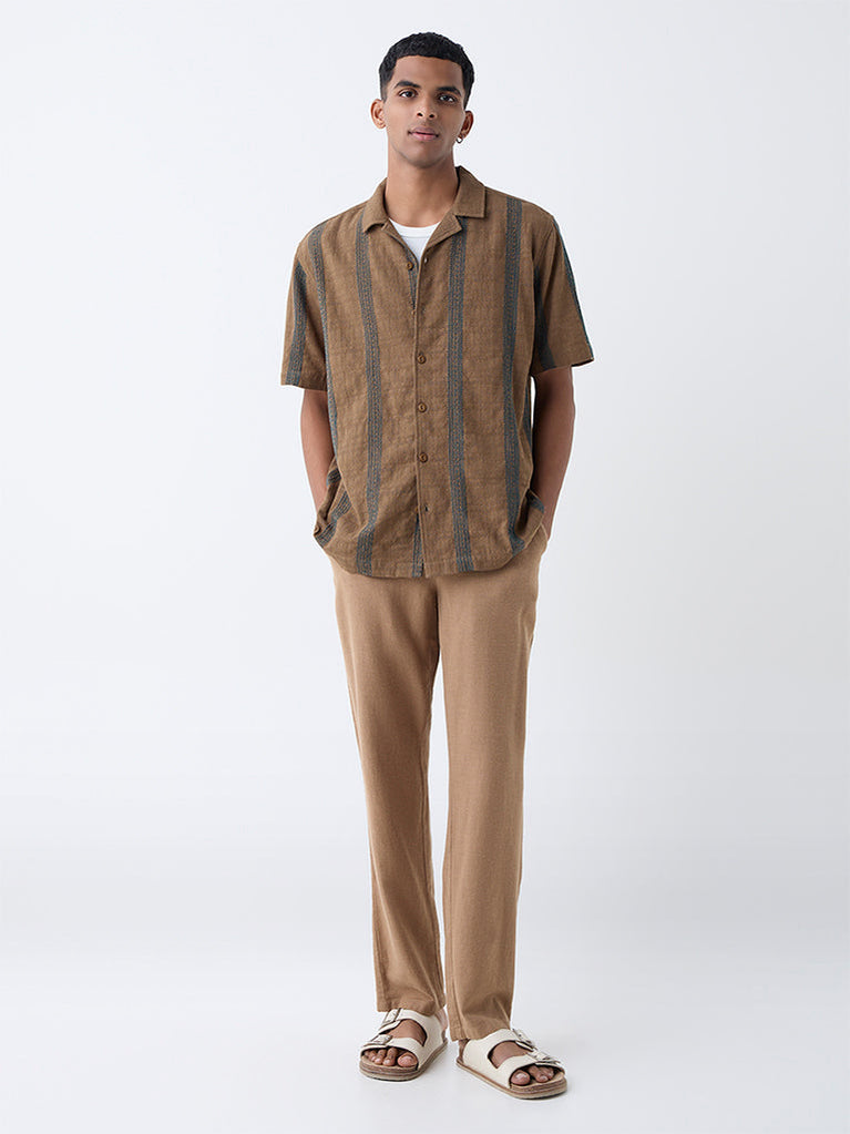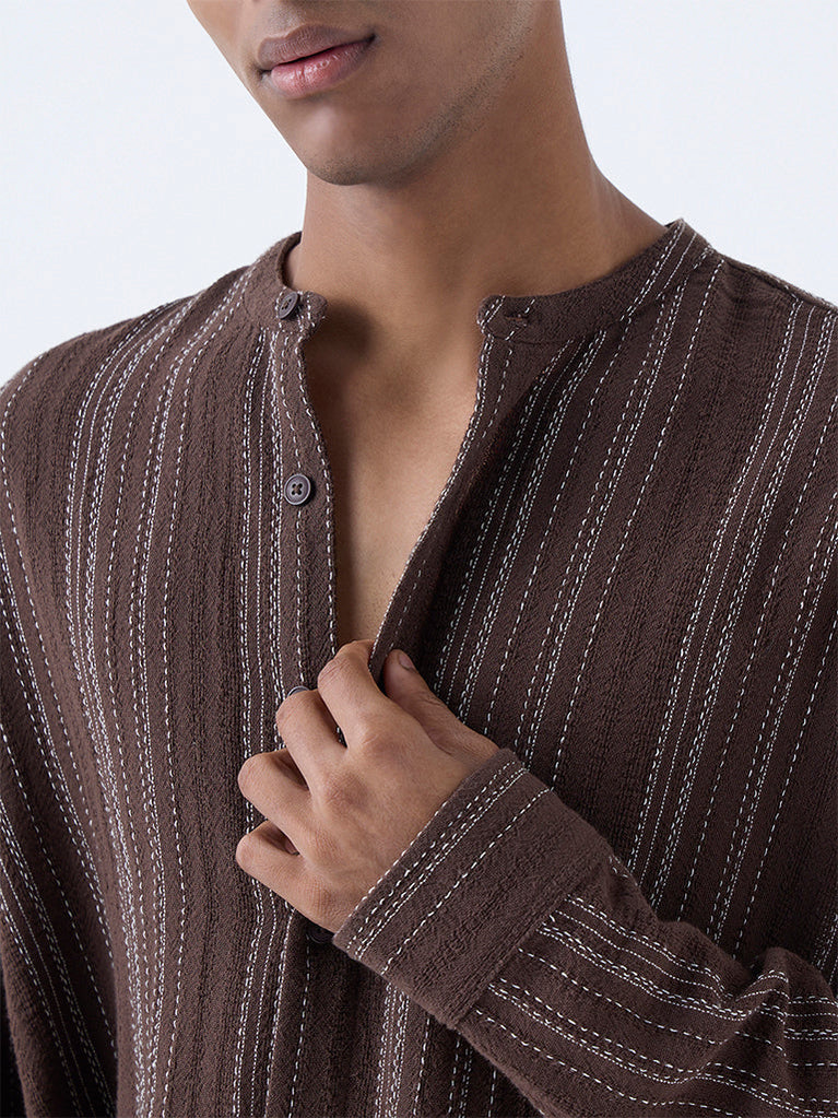 ETA Dark Brown Striped Relaxed-Fit Cotton Shirt