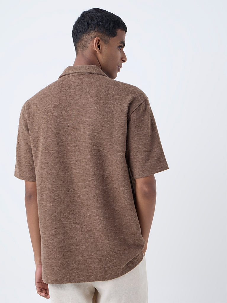 ETA Brown Textured Relaxed-Fit Cotton-Blend Shirt