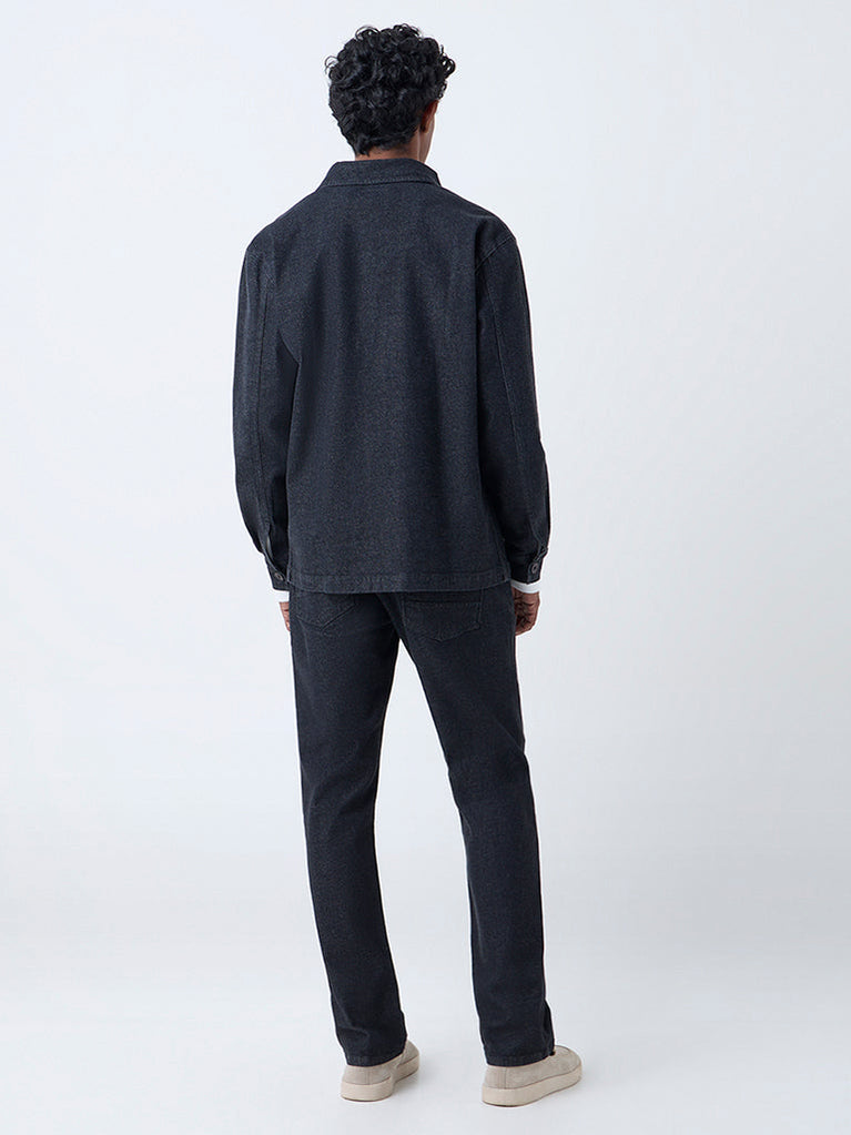 ETA Navy Self-Striped Relaxed-Fit Cotton Shirt