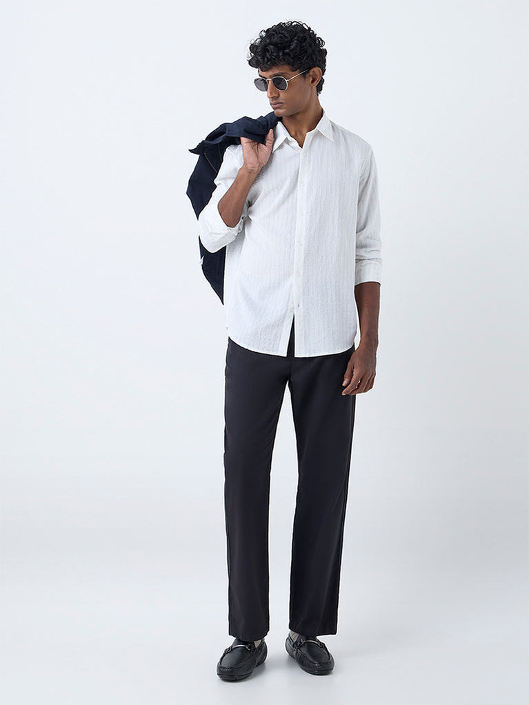 ETA White Self-Striped Relaxed-Fit Cotton Shirt