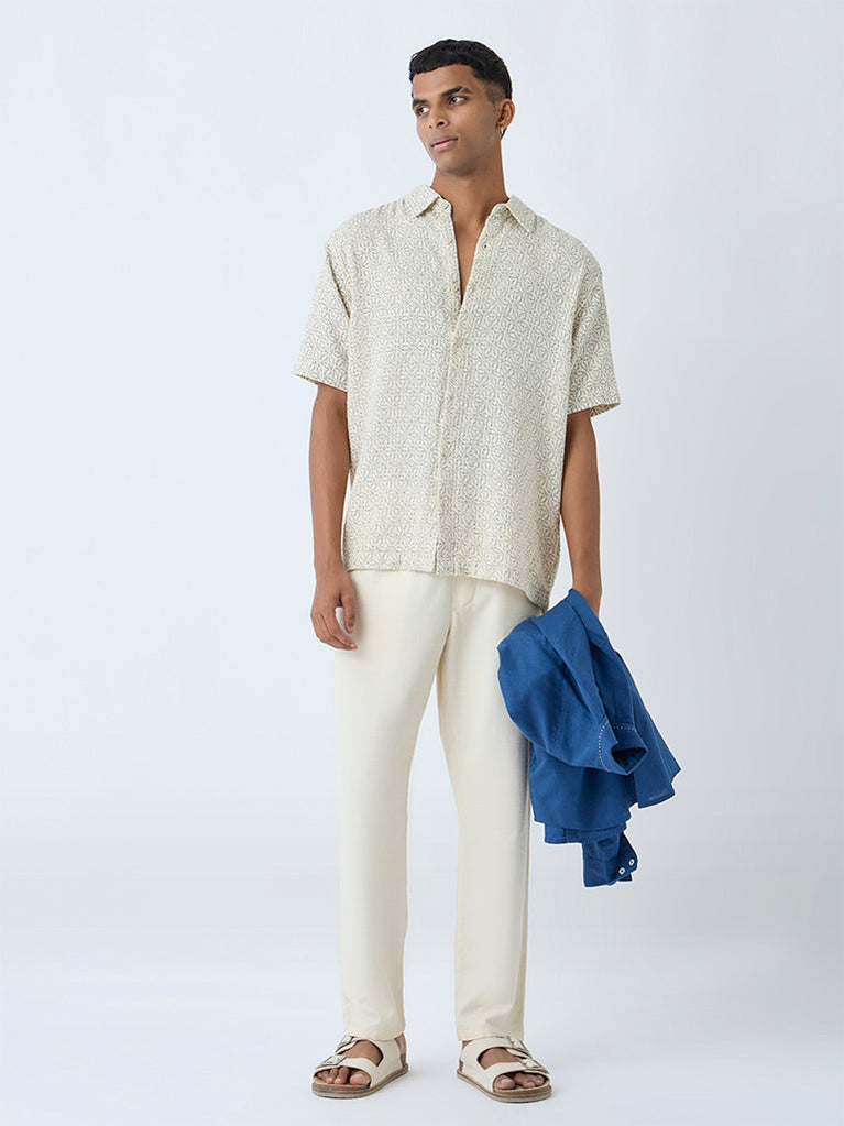 ETA White Printed Relaxed-Fit Cotton-Blend Shirt