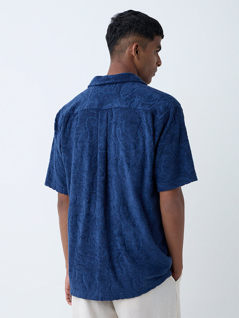 ETA Navy Embroidered Relaxed-Fit Cotton Shirt