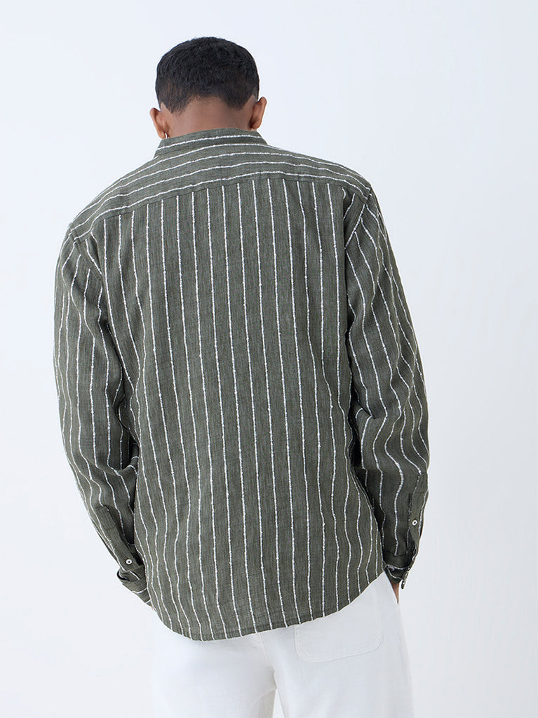 ETA Olive Striped Relaxed-Fit Cotton Shirt