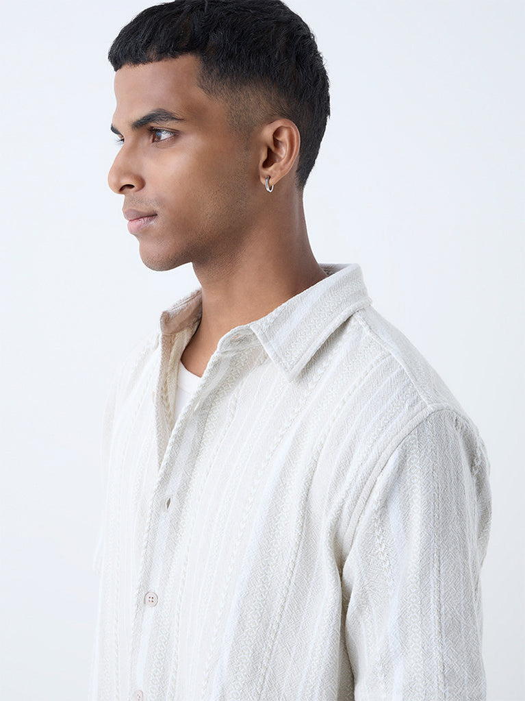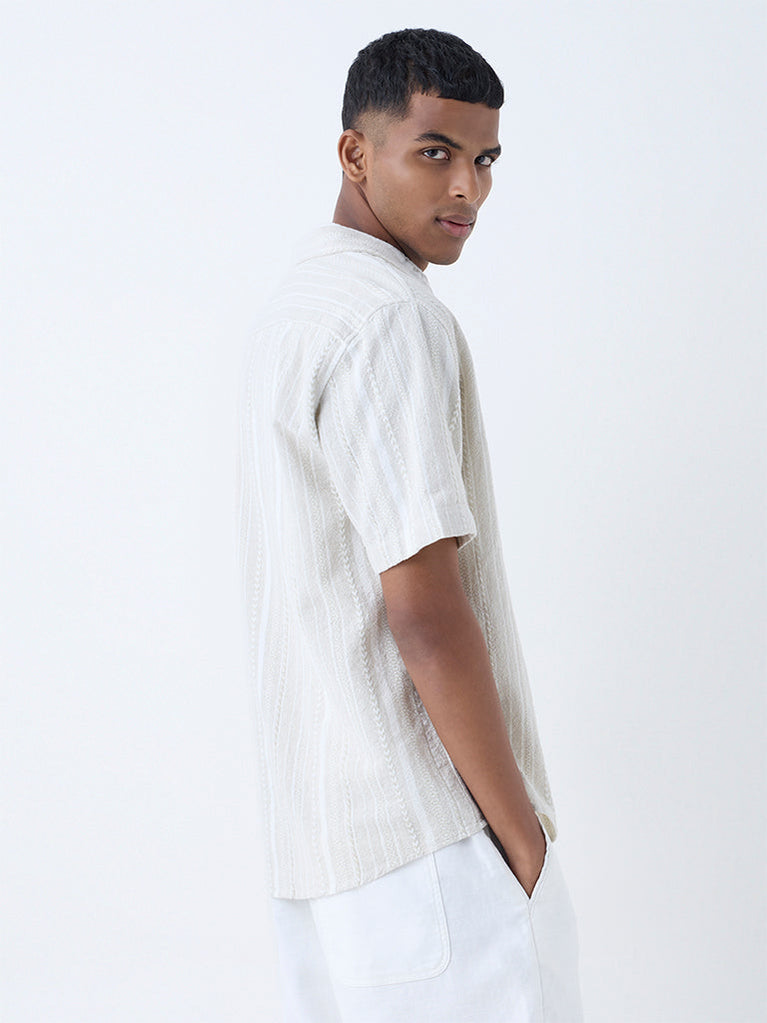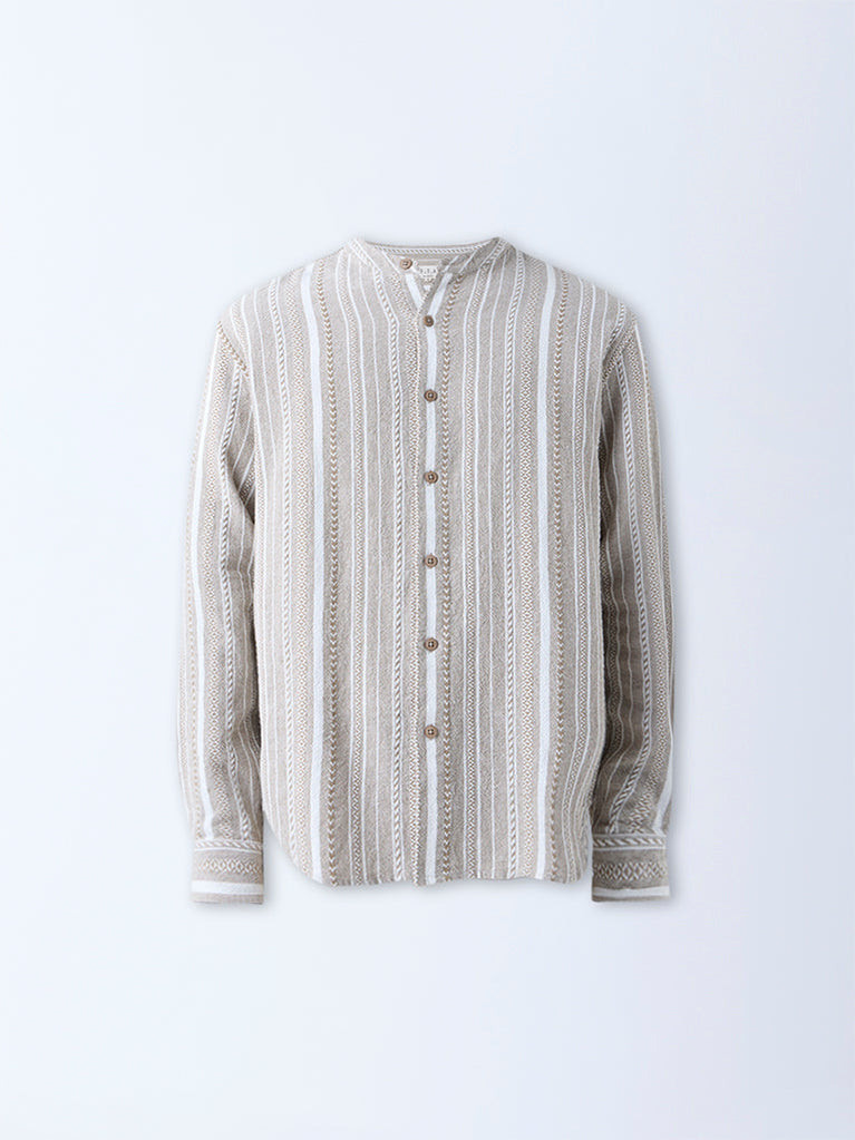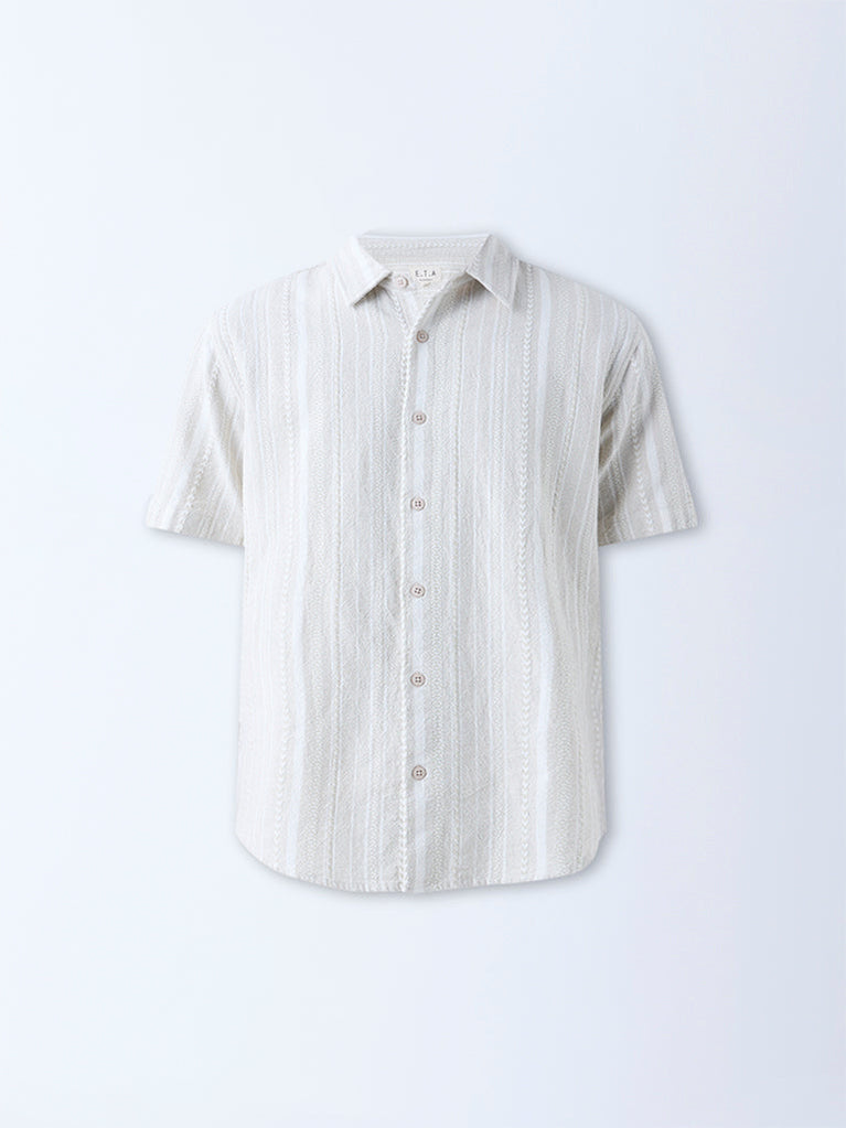 ETA Beige Self-Striped Relaxed-Fit Cotton Shirt