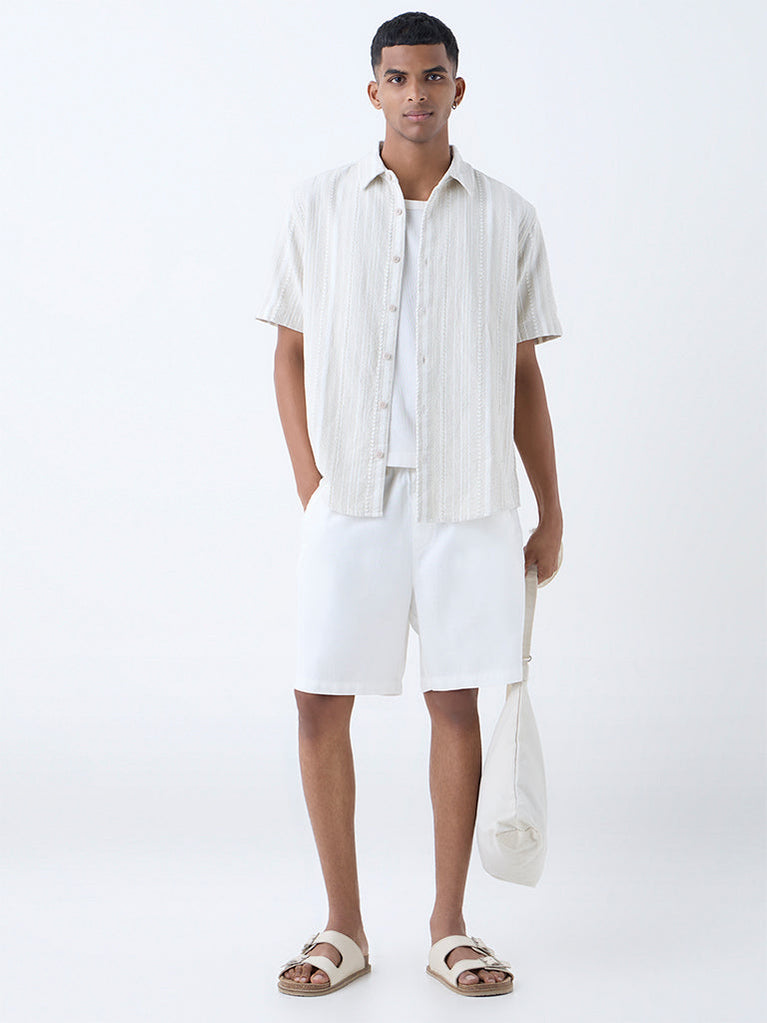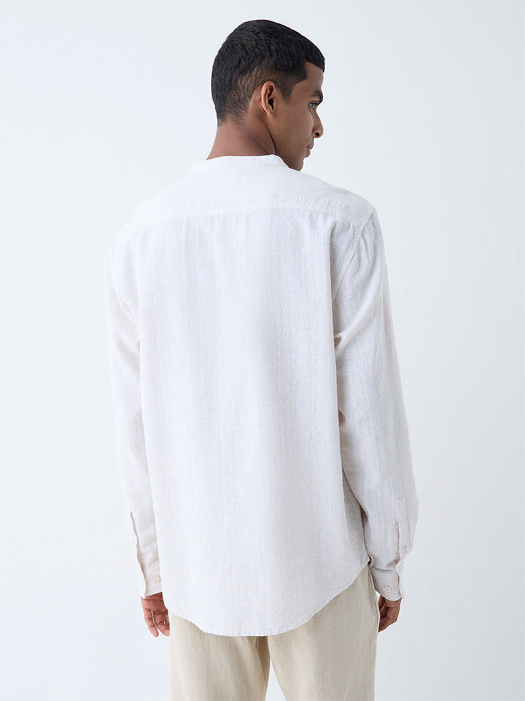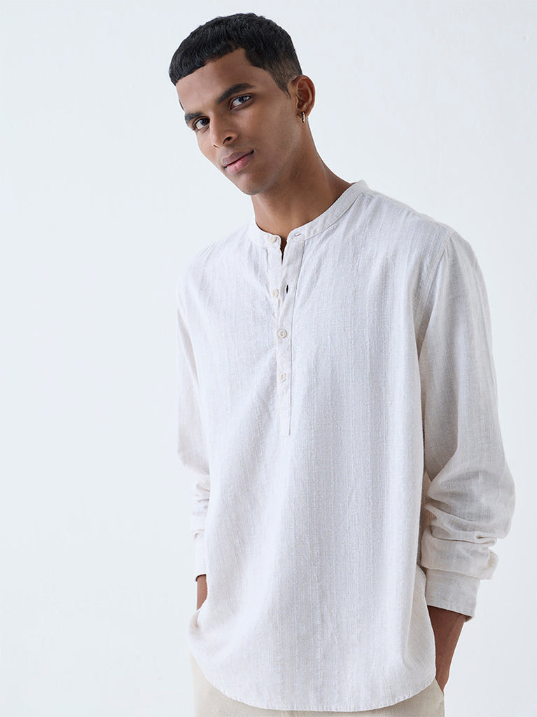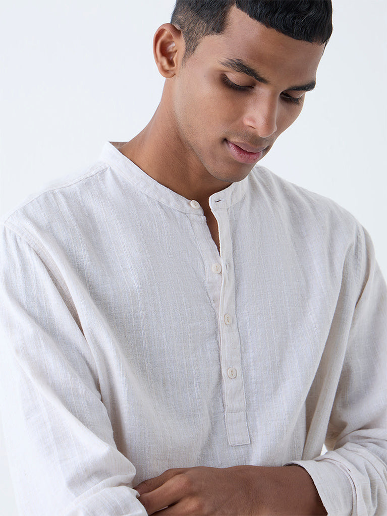 ETA Beige Self-Striped Relaxed-Fit Cotton Shirt