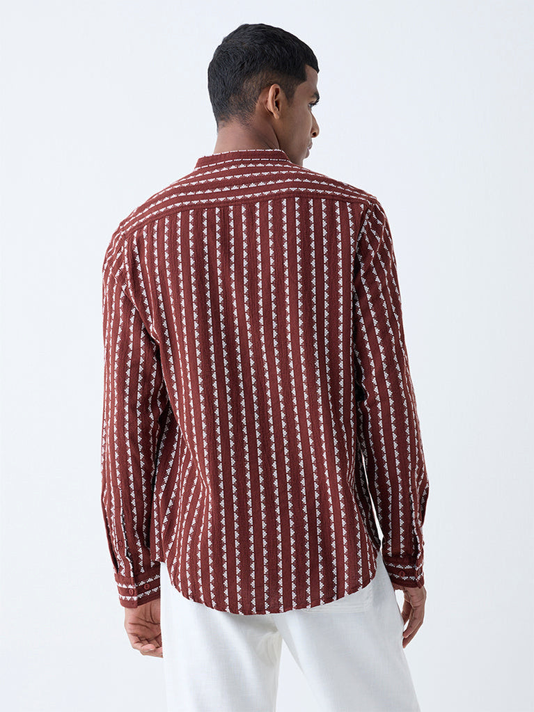 ETA Brown Embroidered Resort-Fit Cotton Shirt