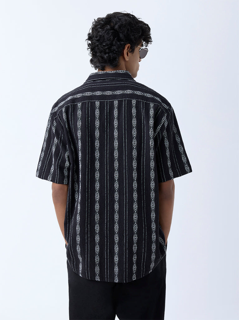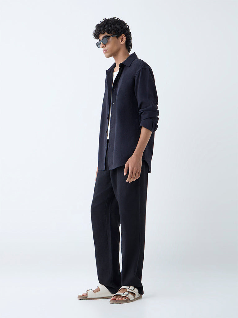 ETA Black Solid Relaxed-Fit Cotton Shirt