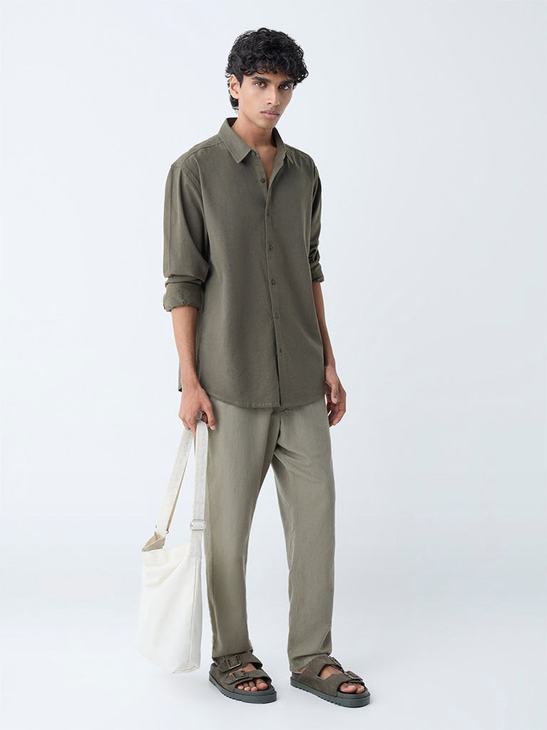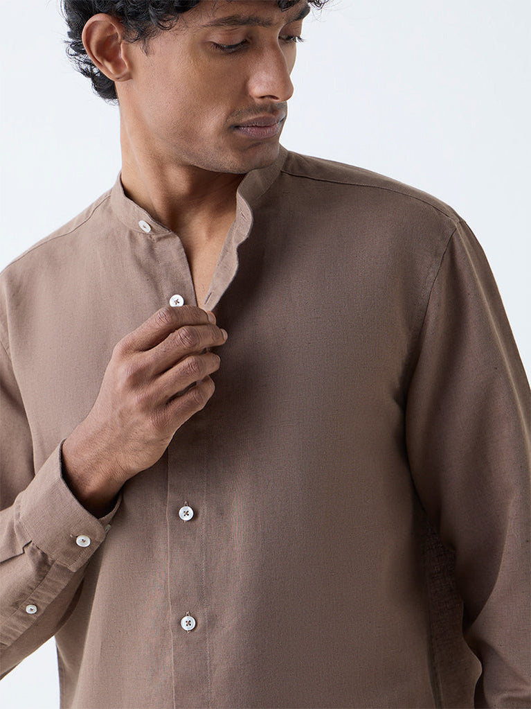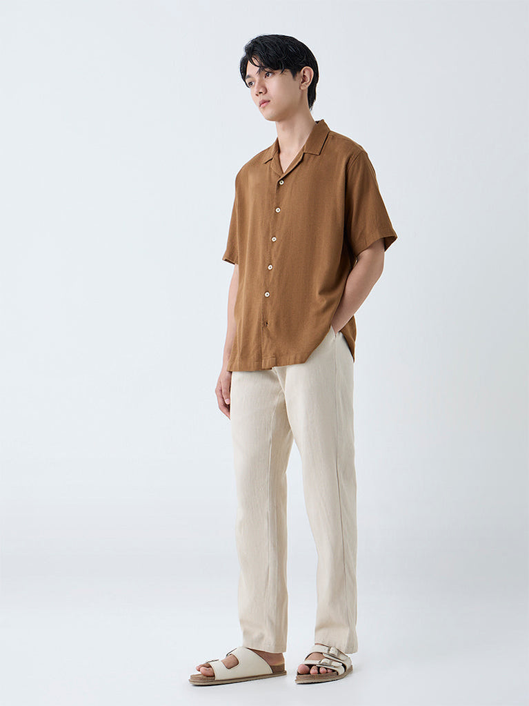 Ascot Brown Solid Relaxed-Fit Linen-Blend Shirt