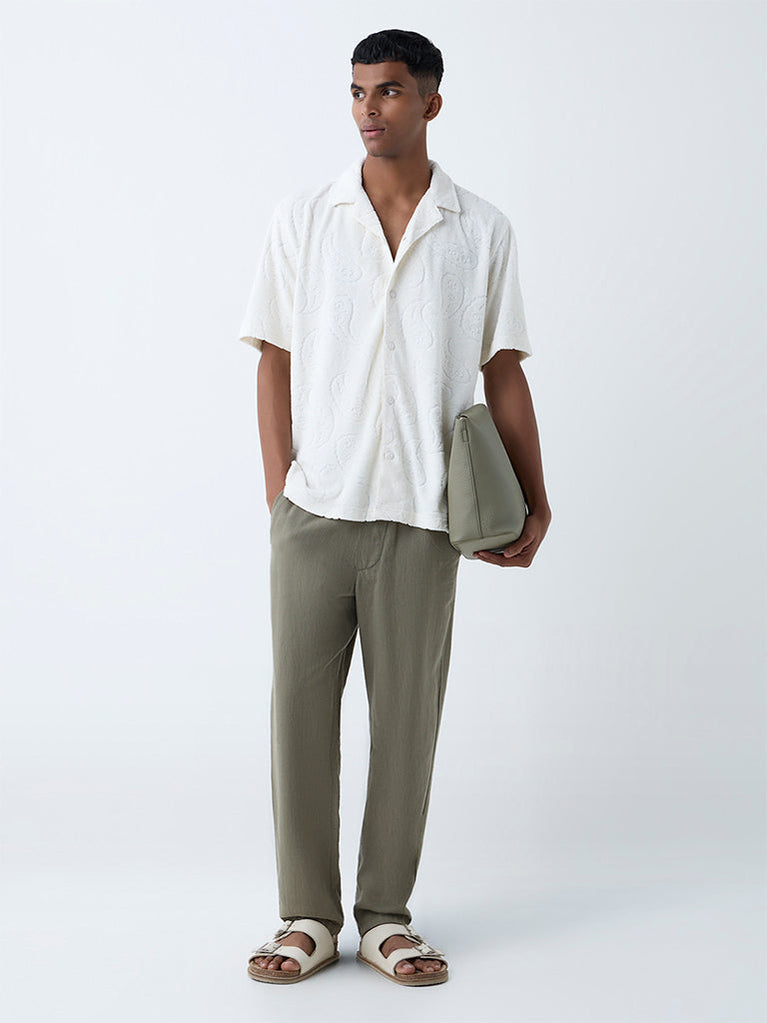 ETA Light Beige Solid Relaxed-Fit Cotton Shirt
