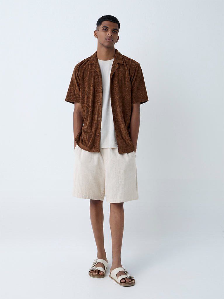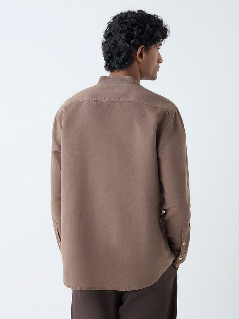 ETA Brown Solid Relaxed-Fit Cotton-Blend Shirt