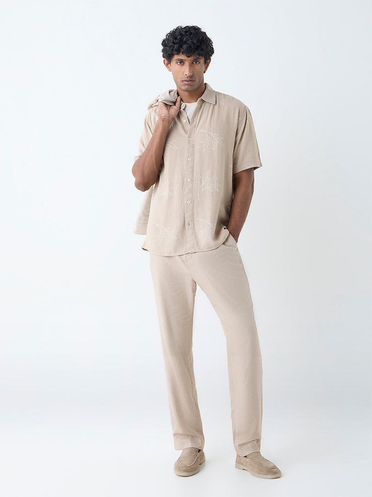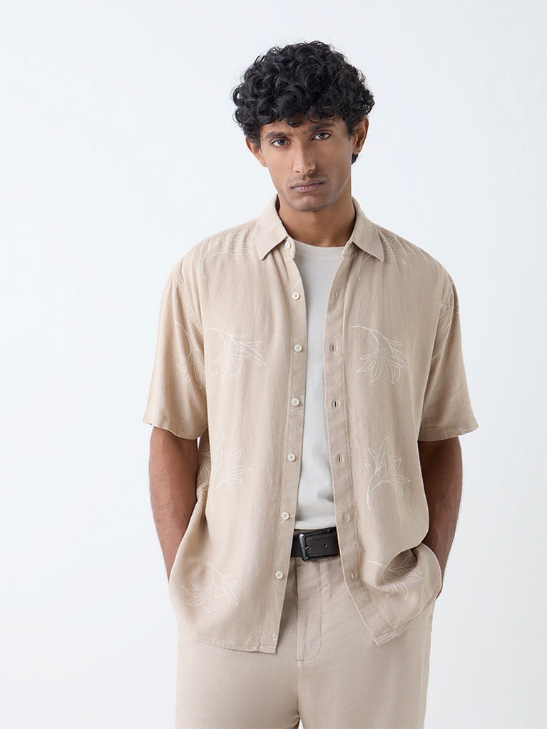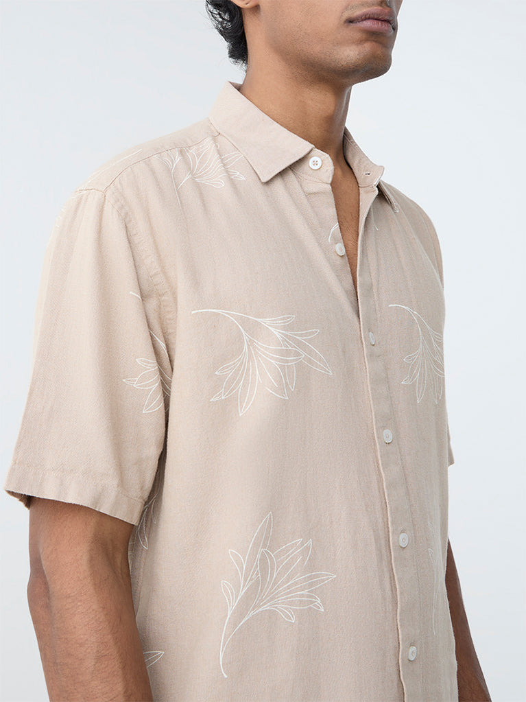 Ascot Beige Floral Design Relaxed-Fit Shirt