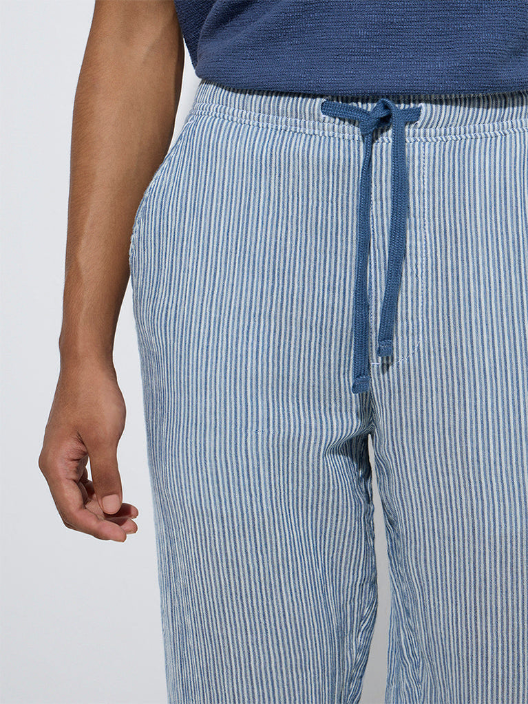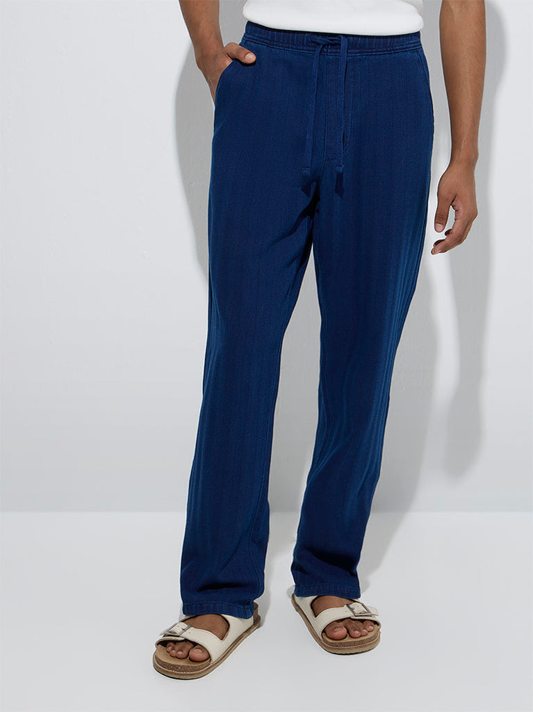 ETA Indigo Striped Relaxed-Fit Mid-Rise Cotton Chinos