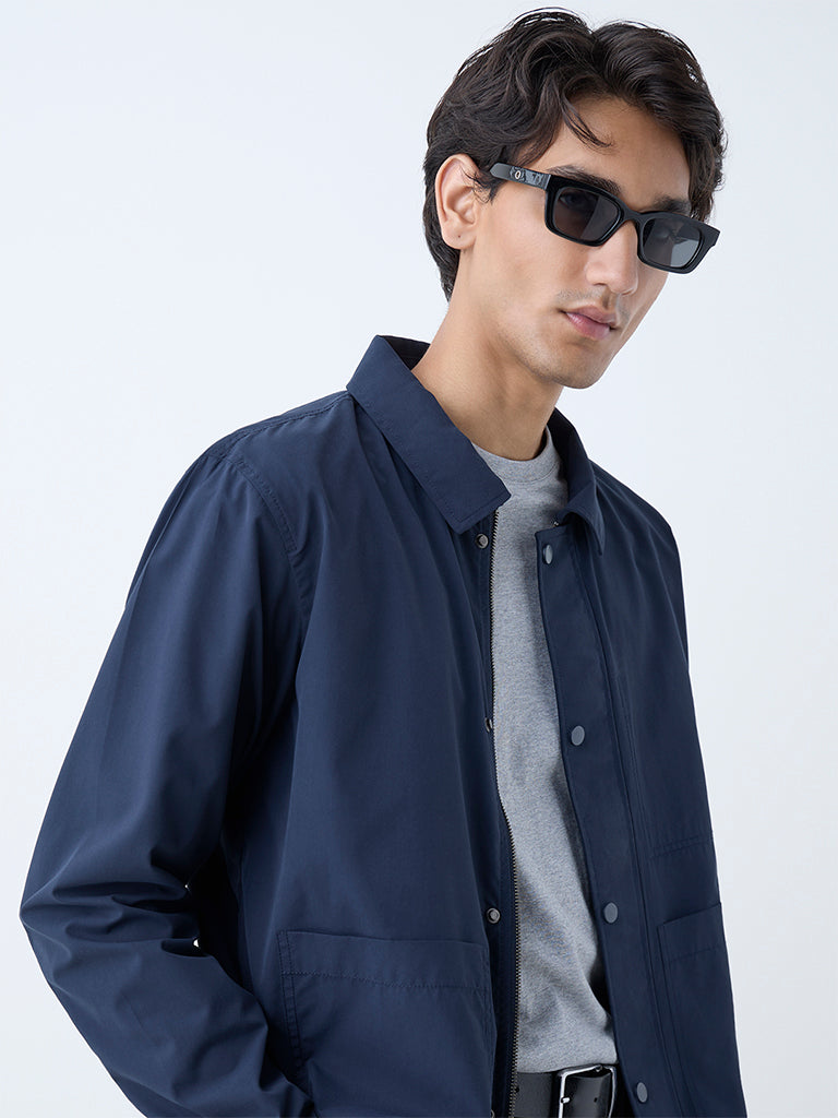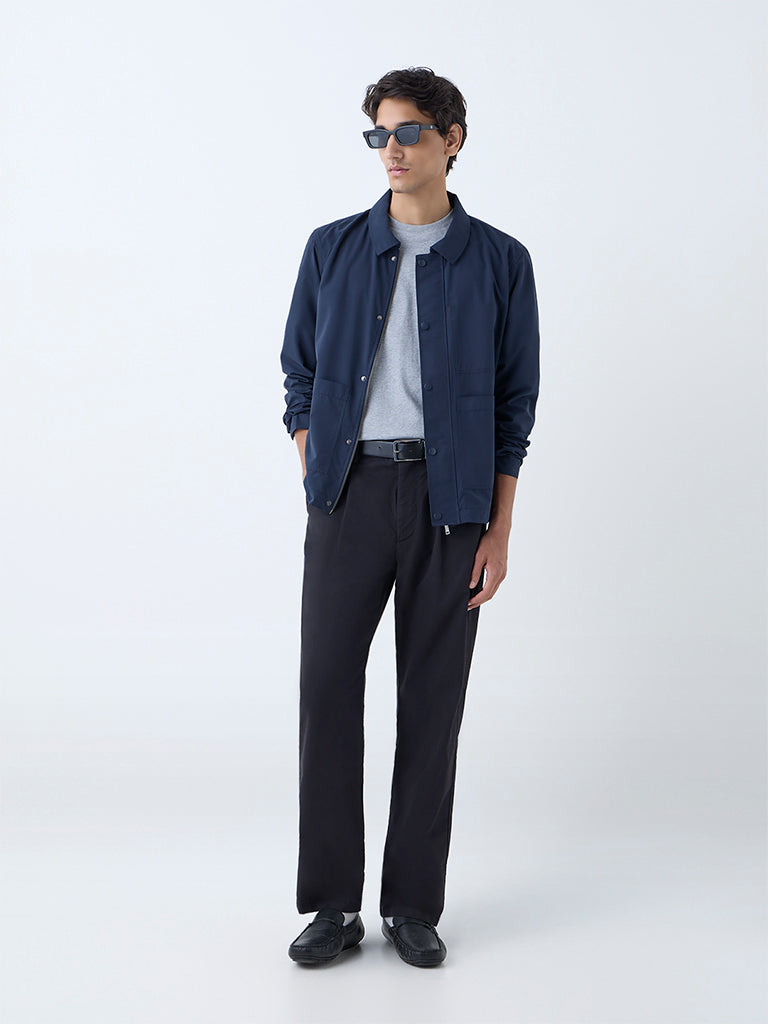 Elevated and intentional, this navy jacket from Ascot redefines casual tailoring. Crafted from premium fabric in a relaxed silhouette, it features a structured collar, full-length sleeves, and dual welt pockets. A concealed zip front sits beneath a traditional button placket, offering a clean finish with subtle edge.