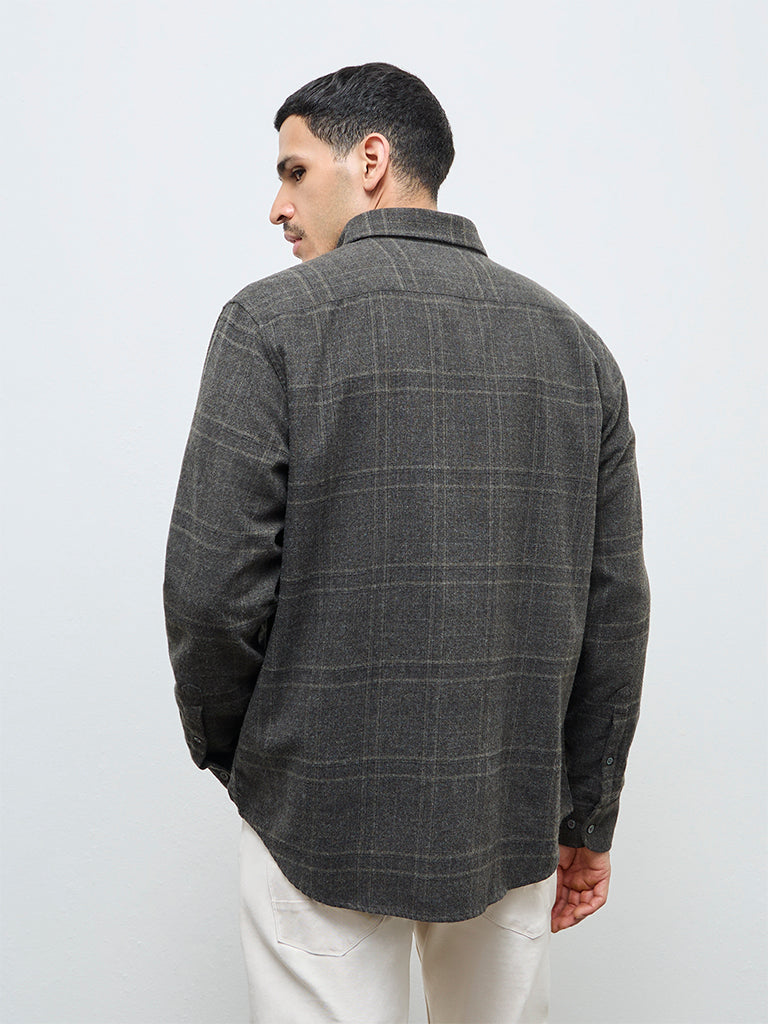 Ascot Taupe Checkered Relaxed-Fit Shirt