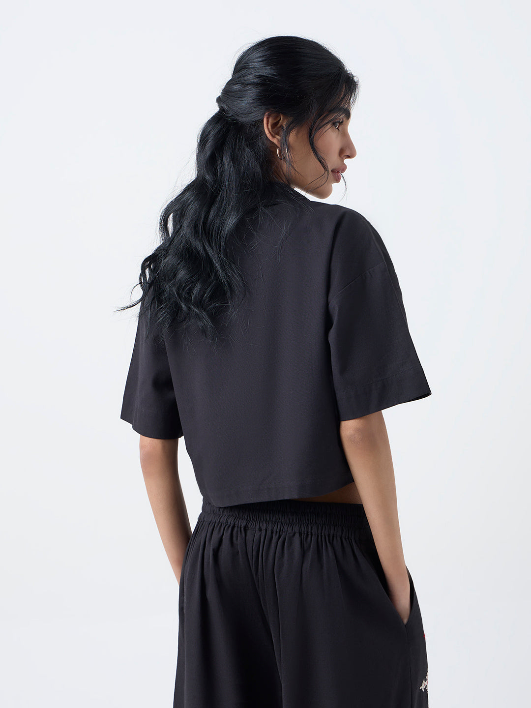 Bring festive sparkle into your everyday wardrobe with this black shirt from Bombay Paisley, beautifully adorned with traditional-inspired embroidery that lends an artisanal glow. The notched lapel collar flows into a button-up front, while short sleeves keep the silhouette easy and relaxed. Crafted from a soft cotton-blend fabric, it is a versatile piece that transitions effortlessly from casual gatherings to celebratory evenings.