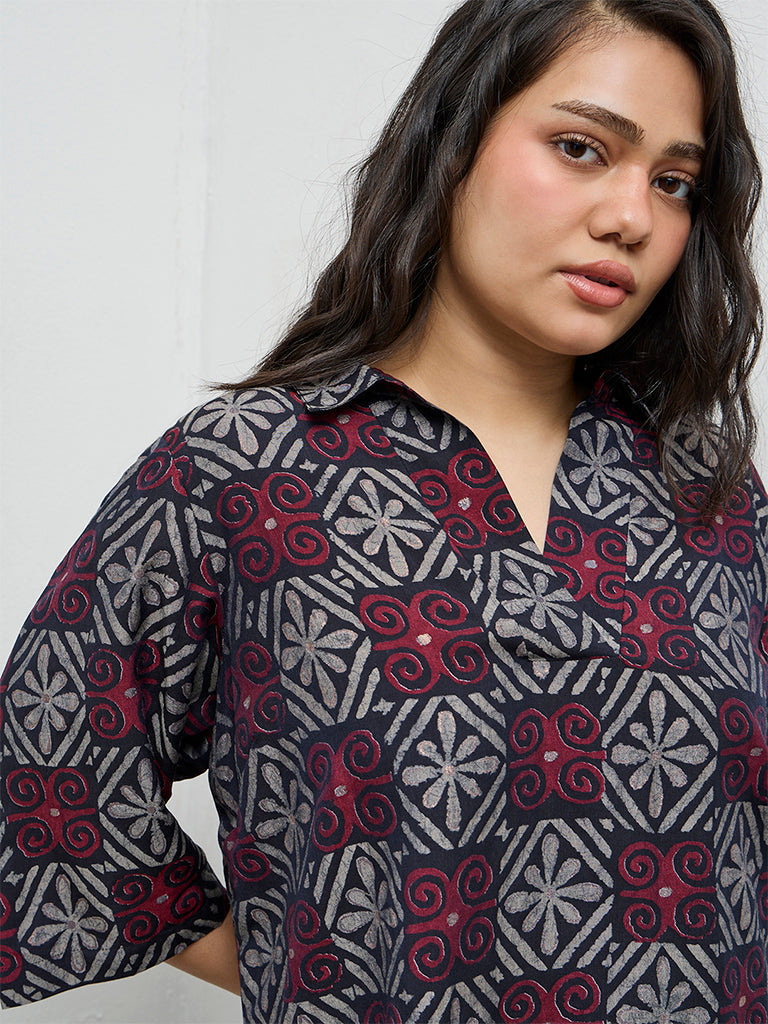 Diza Black Printed High-Low Tunic