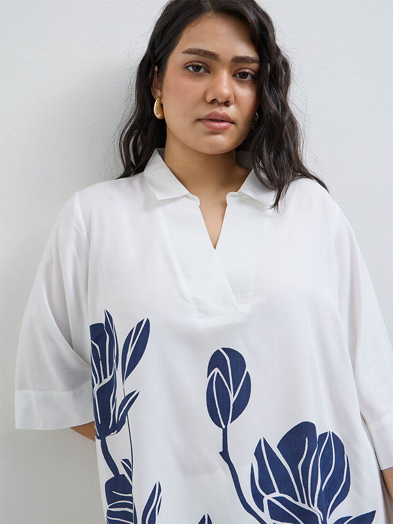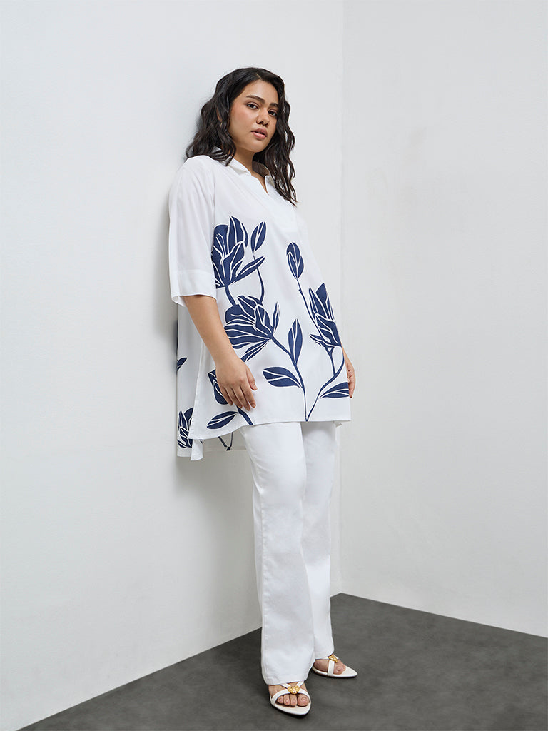 Diza White Floral Pattern High-Low Tunic