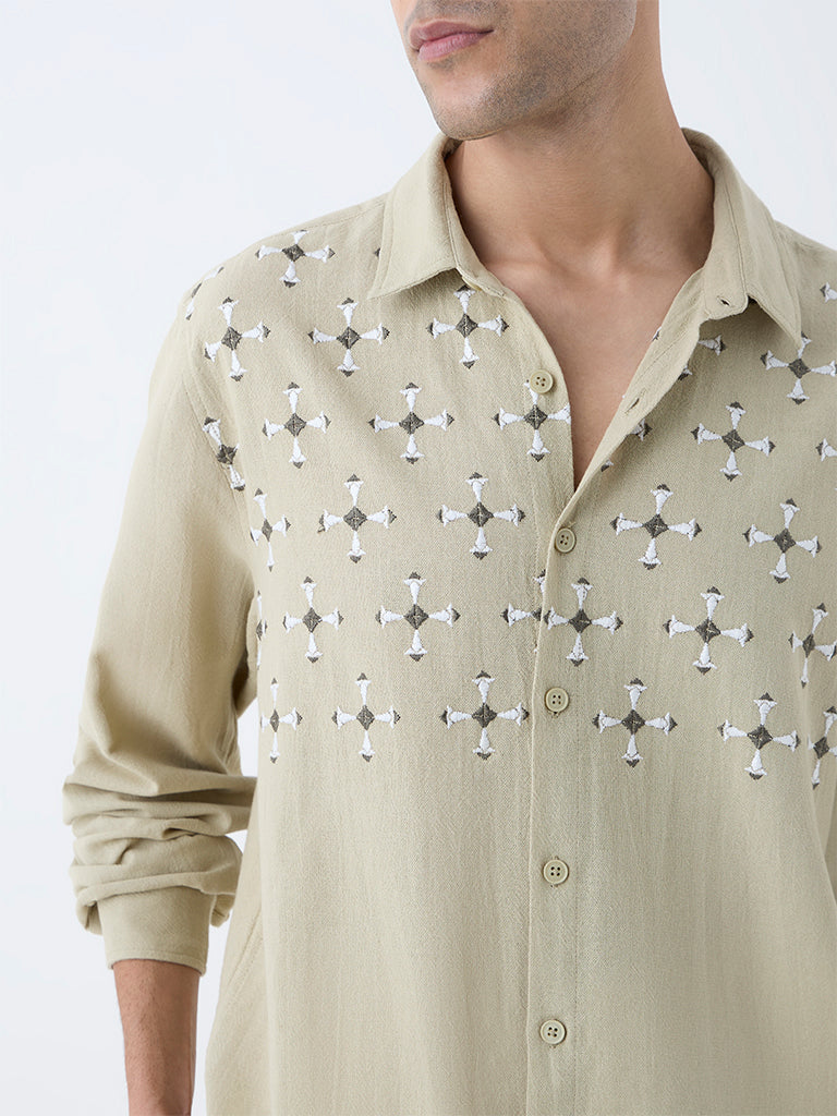 ETA Beige Embroidered Relaxed-Fit Cotton Shirt