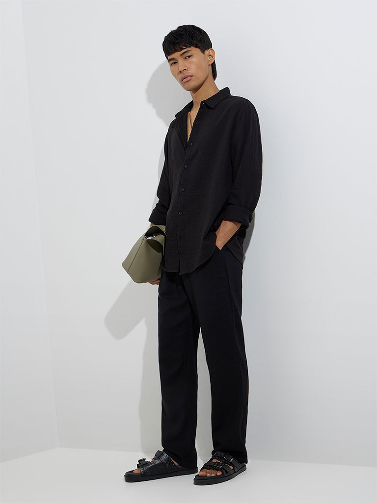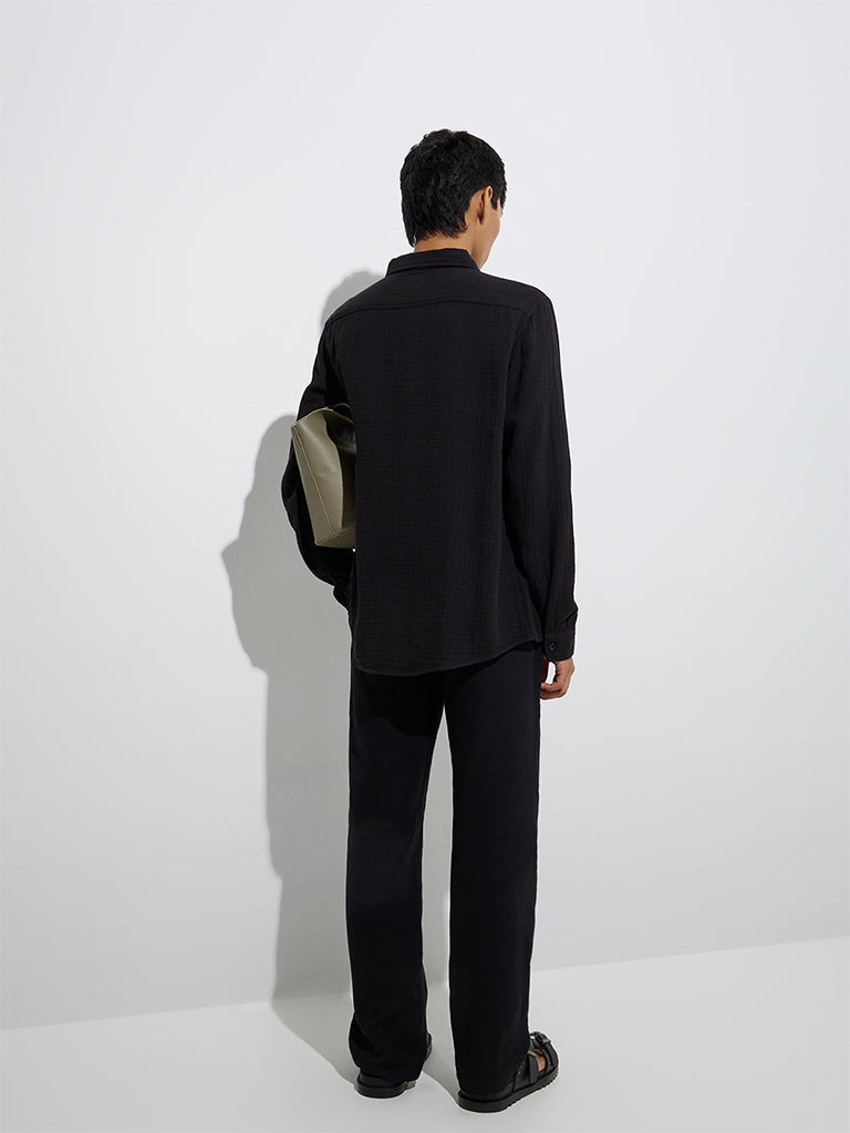 ETA Black Crinkle Textured Relaxed-Fit Cotton Shirt