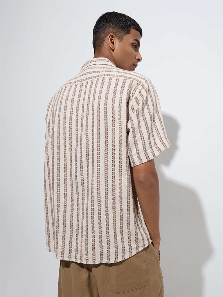 ETA Light Beige Stripe Embroidered Relaxed-Fit Cotton Shirt