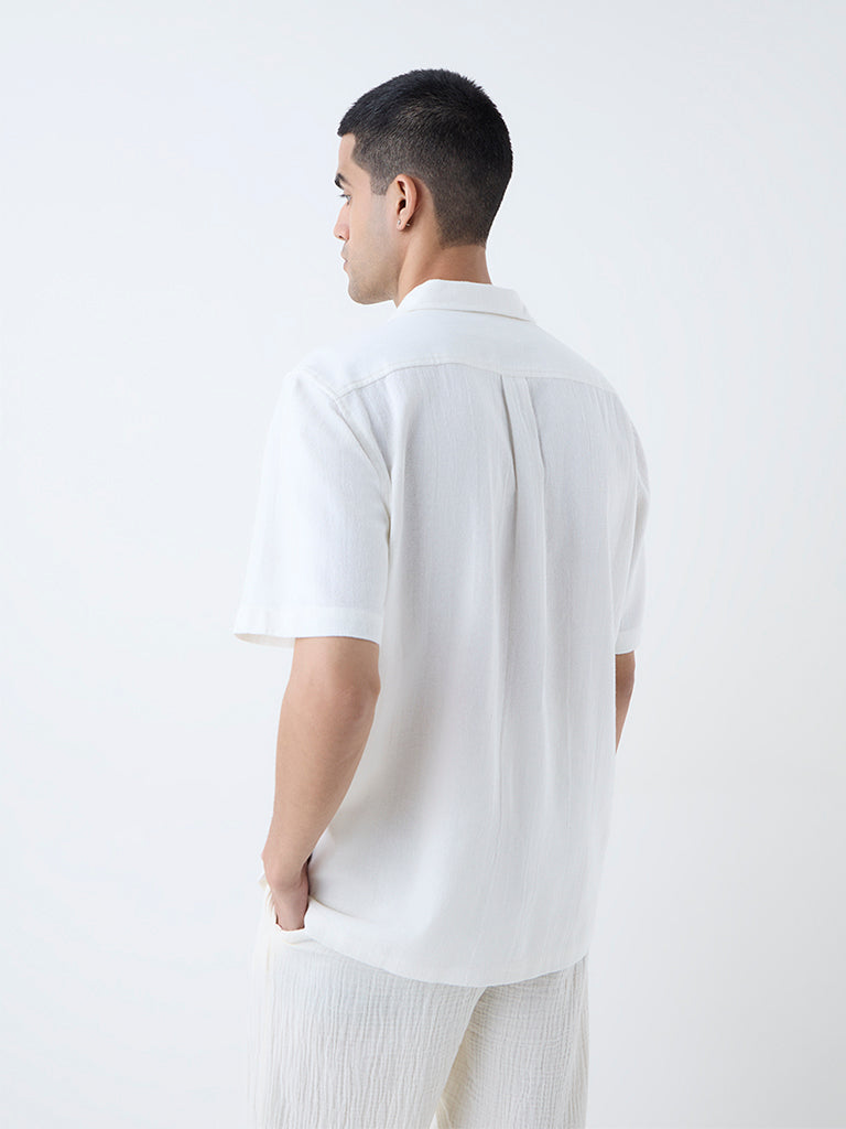 ETA Off-White Embroidered Relaxed-Fit Cotton Shirt