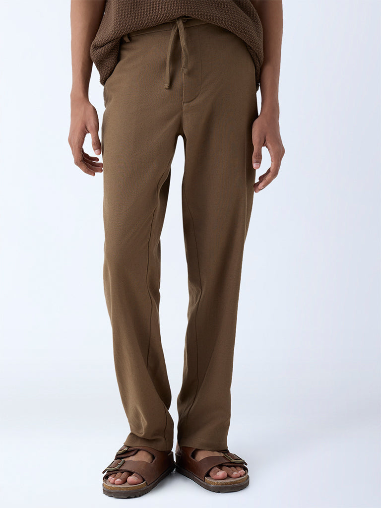 ETA launches these olive chinos tailored from a soft cotton-blend fabric to ensure lasting comfort throughout the day. Cut in a relaxed handle, the design includes a button closure, zip fly, belt loops, and adjustable drawstrings for a flexible fit. Complete with multiple pockets, this versatile pair balances function and ease.