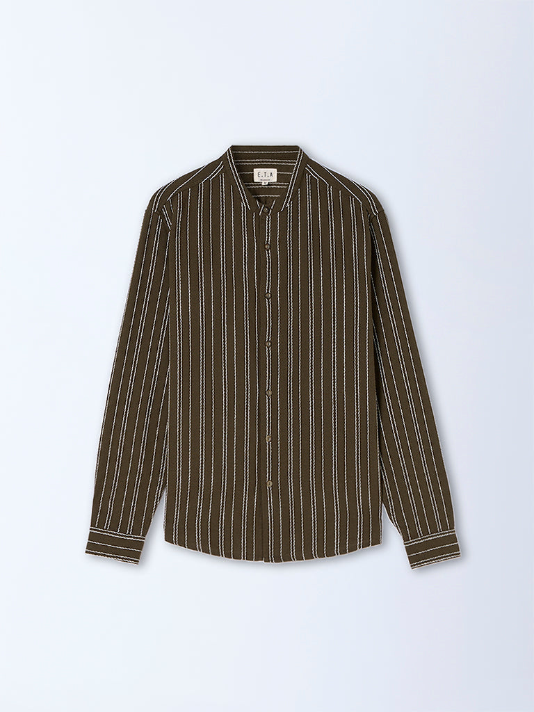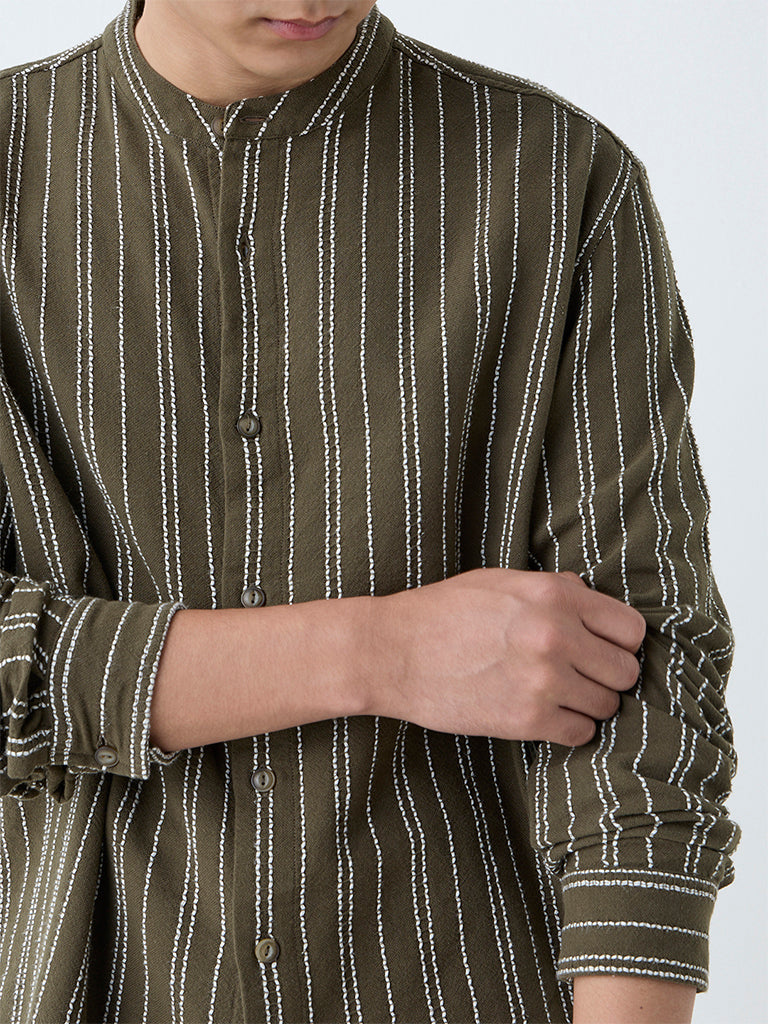 ETA Olive Striped Relaxed-Fit Cotton Shirt