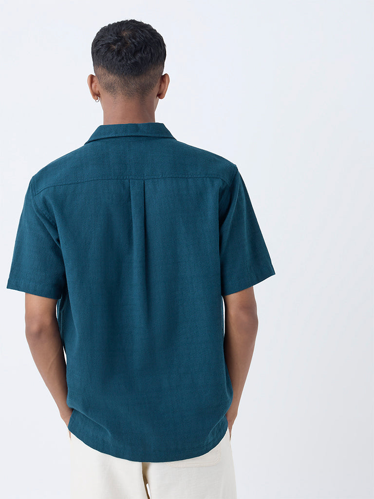 ETA Teal Embroidered Relaxed-Fit Cotton Shirt