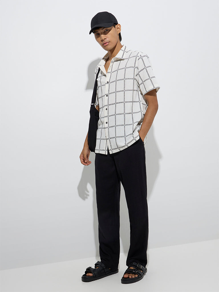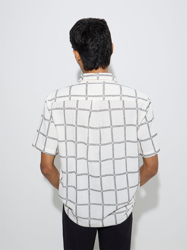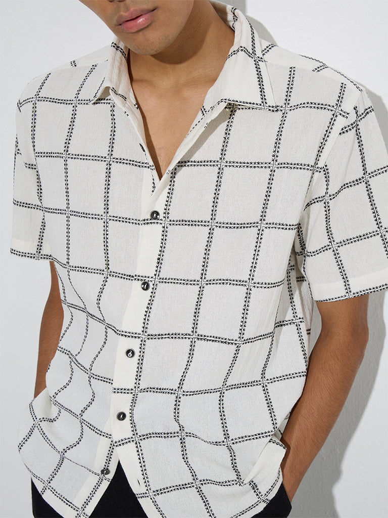 ETA White Checks Detailed Relaxed-Fit Cotton Shirt