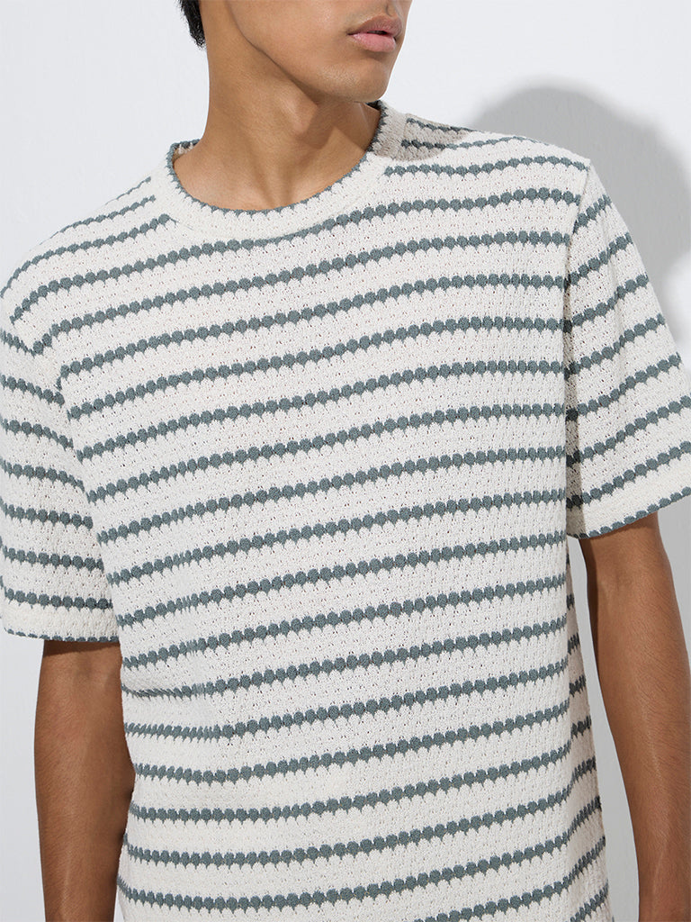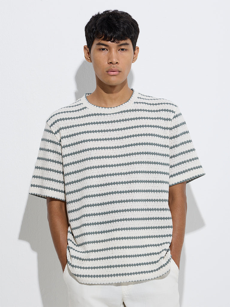 ETA White Knit-Textured Relaxed-Fit T-Shirt