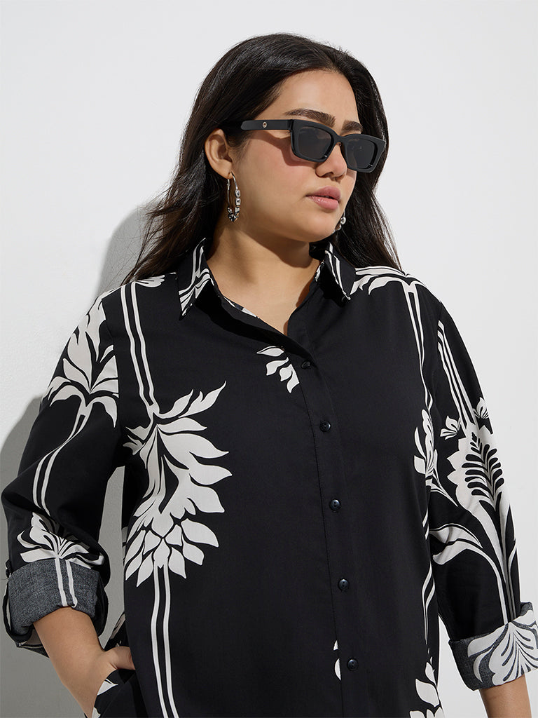 This black shirtdress from Gia is adorned with intricate floral prints that offer a bold yet graceful contrast. Created from quality fabric for a flattering drape, it’s styled with a smart collar, a button-down front, and full sleeves for a polished finish. Thoughtfully designed with side pockets, this dress blends functionality with timeless charm.