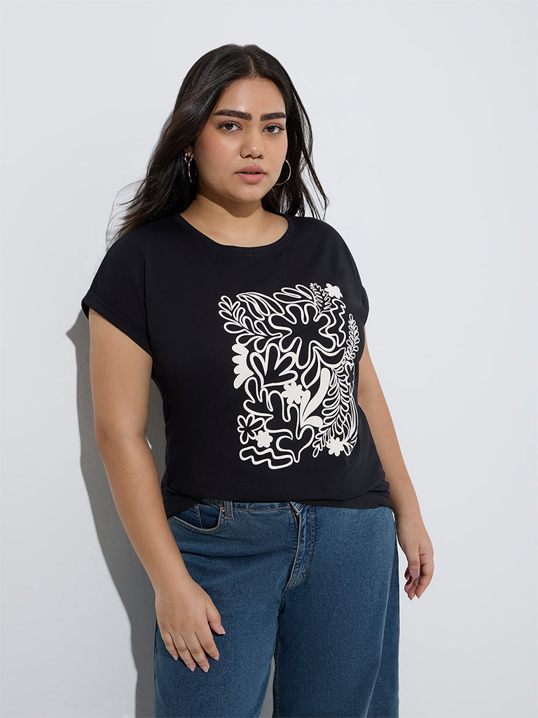 Gia Black Printed Cotton T-Shirt