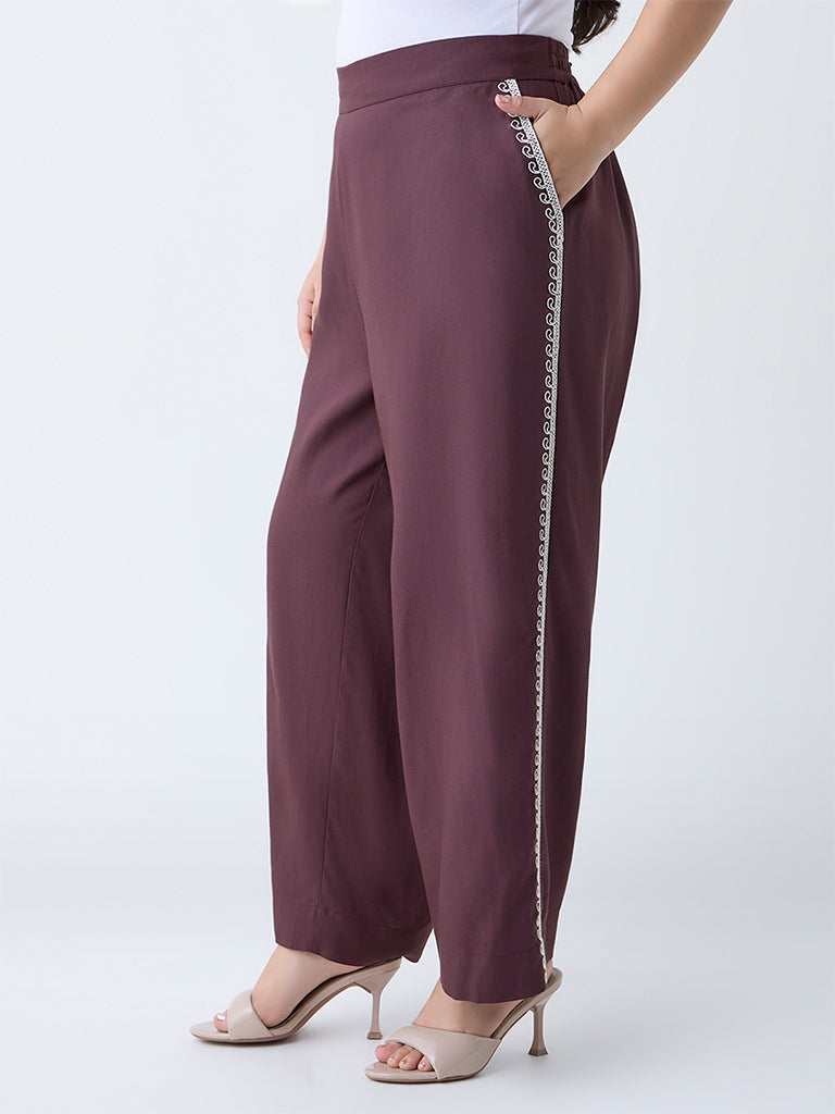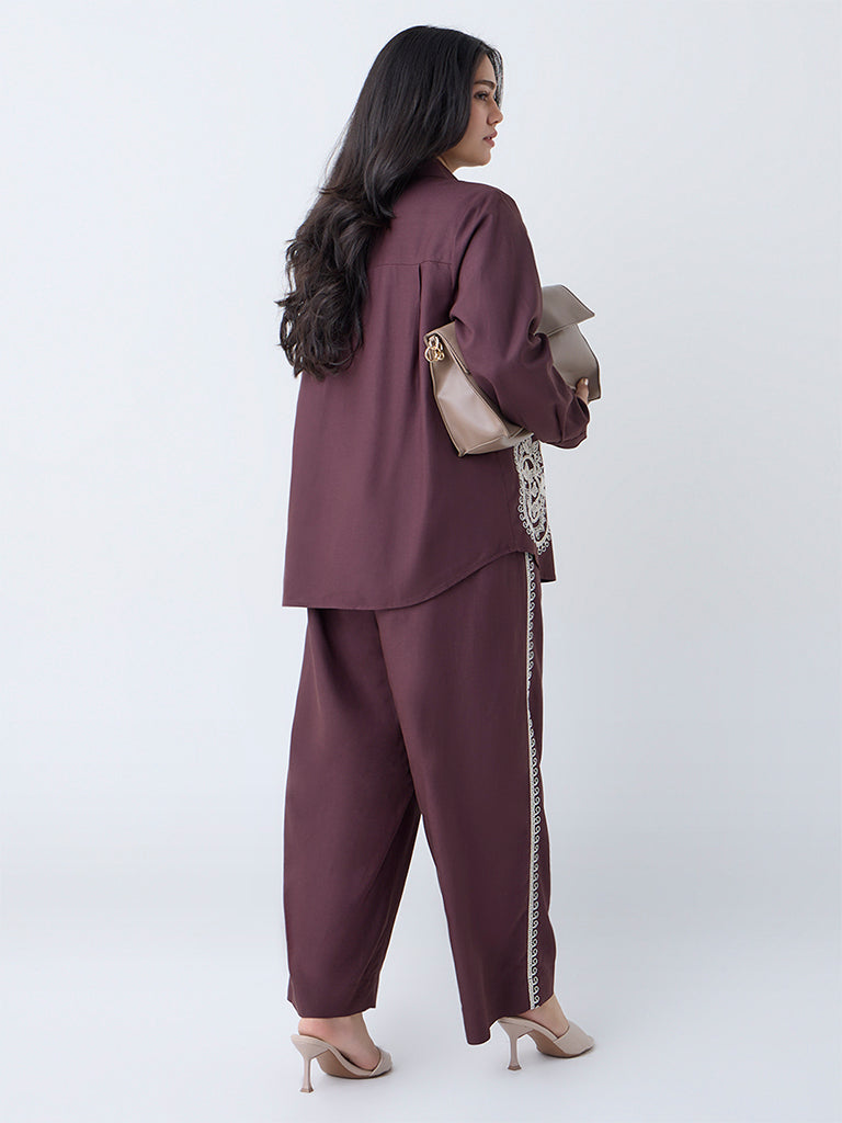 Gia Dark Brown Embroidered High-Rise Pants