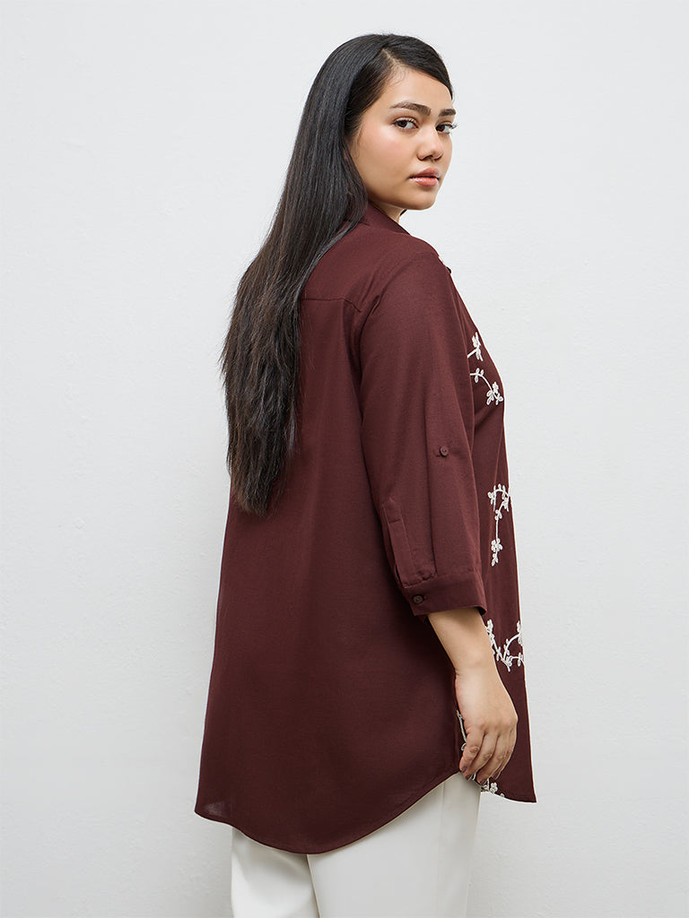 Gia Dark Brown Floral Embroidered Shirt