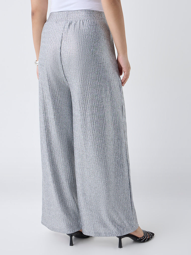 Step into subtle sparkle with these silver pants from Gia. The soft, shimmery fabric moves with ease, offering a metallic finish that feels glamorous without going over the top. An elasticated waistband ensures a snug, stay-put fit that supports your curves comfortably.
