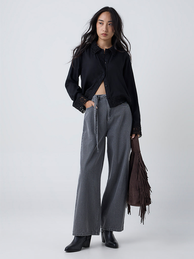 For the days you want to feel polished with just a hint of romance, this black shirt from LOV is the one to reach for. Crafted from premium fabric, it features a crisp collar paired with delicate lace trim at the cuffs and hemline. With its full sleeves and sleek finish, it is effortlessly feminine and endlessly versatile.