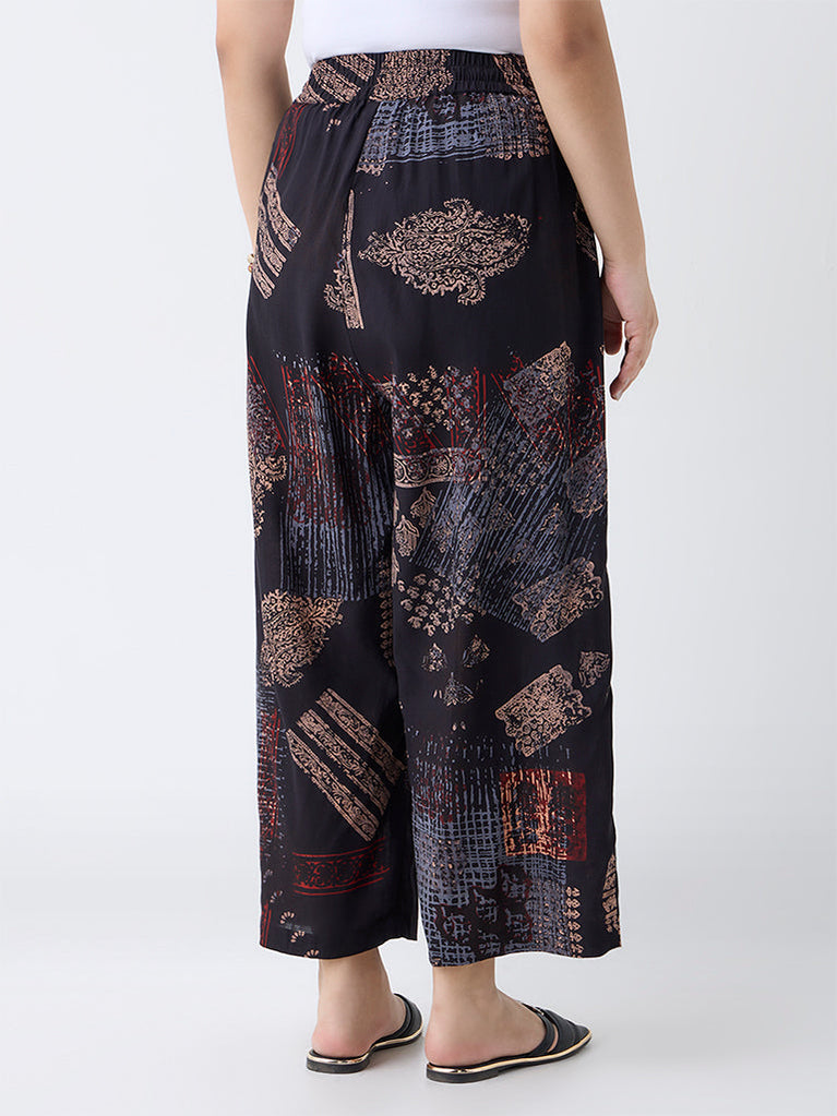 Diza introduces these black ethnic pants brought to life with all-over floral prints, lending a vibrant yet versatile charm. Crafted from a lightweight, flowy fabric, they feature an elasticated waistband for a secure, effortless fit, while side pockets add everyday ease.