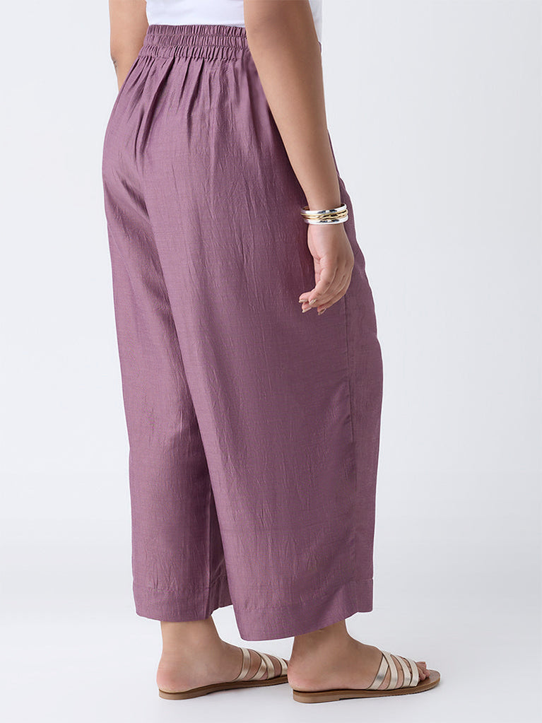 Infuse grace into festive dressing with these plum ethnic pants from Diza. Tailored in a fluid silhouette, they drape beautifully with every step while ensuring day-long ease. Style them with tonal or contrast kurtas to create a statement of effortless sophistication.