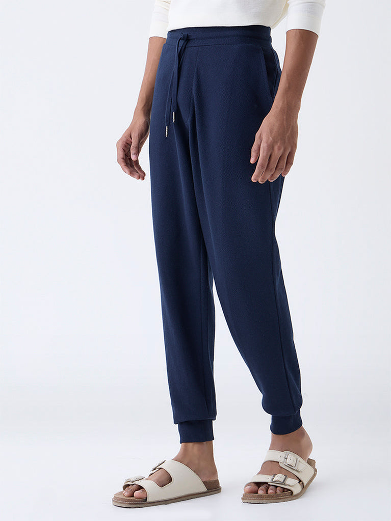 ETA Navy Relaxed-Fit Mid-Rise Cotton-Blend Joggers